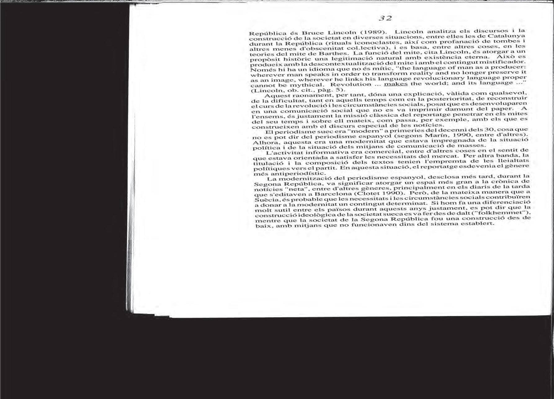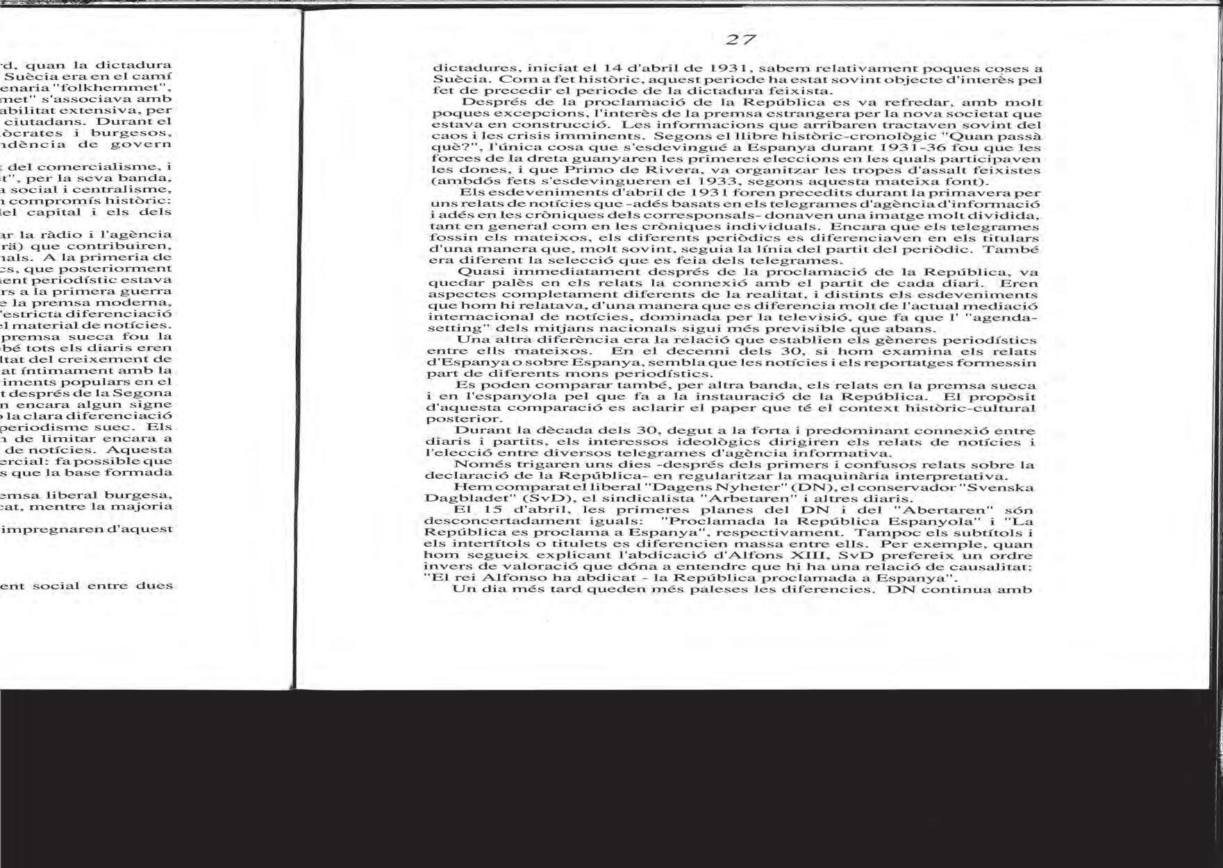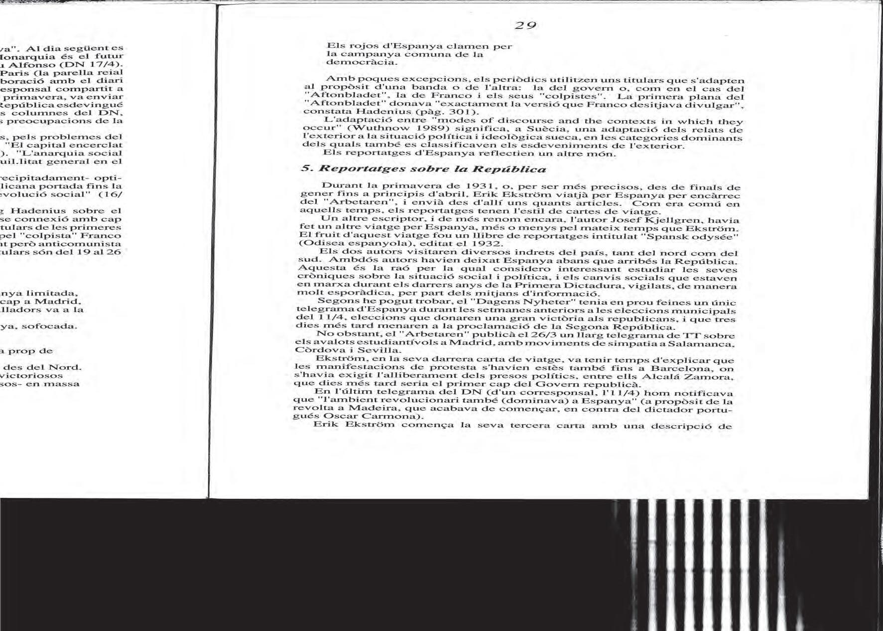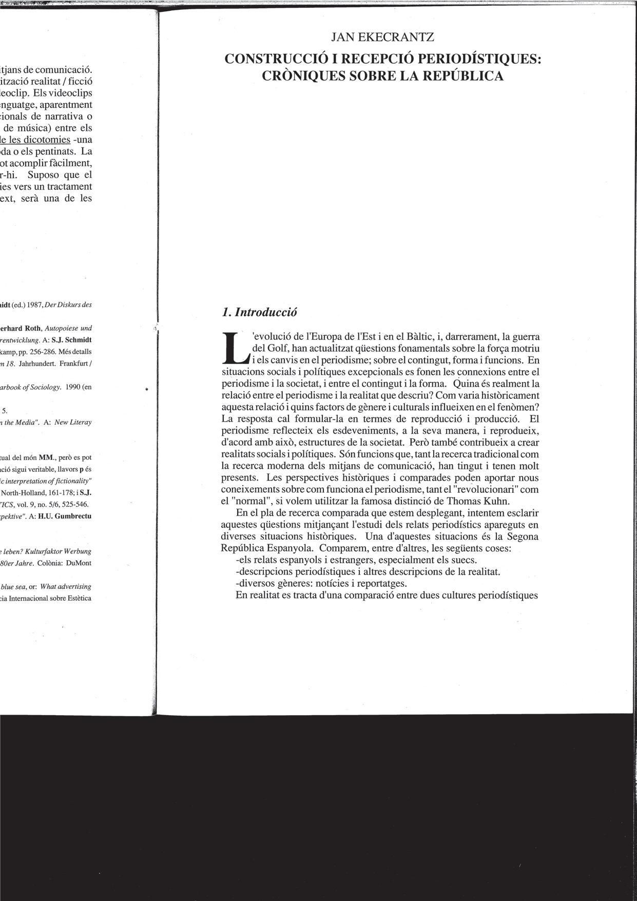 Jan ekecrantz, «Construcció i recepció periodístiques: cròniques sobre la República», 1991.