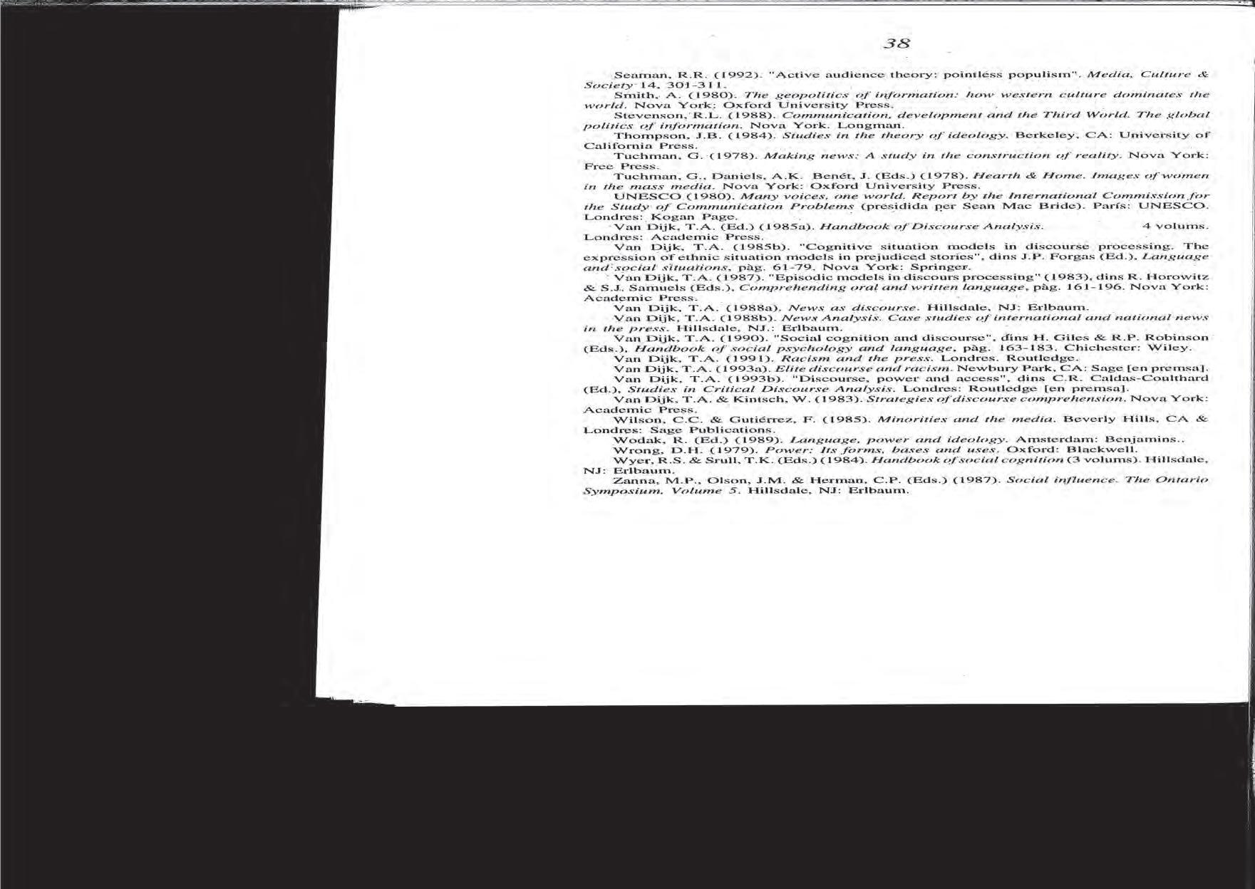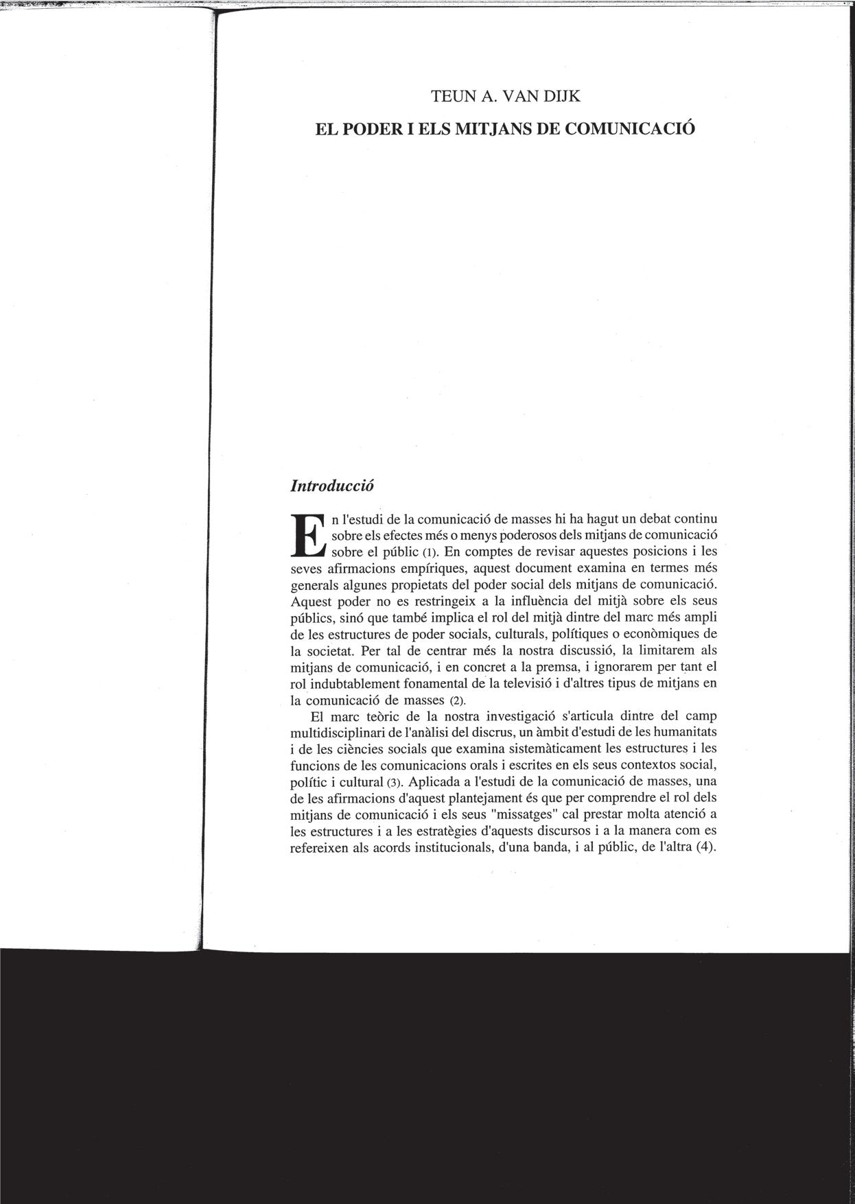 Teun A. van Dijk, «El poder i els mitjans de comunicació», 1993.