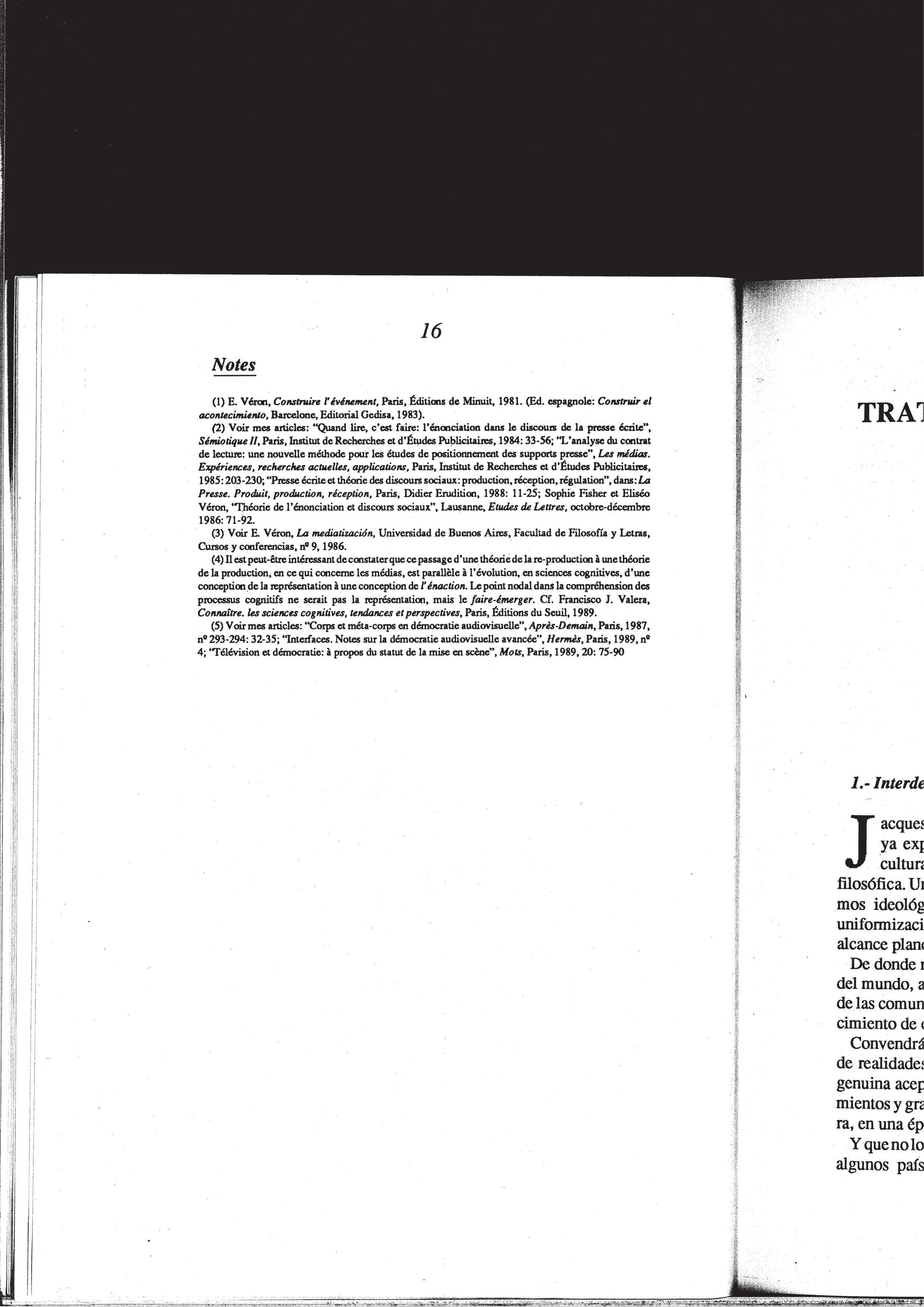 Eliséo verón, «La construction sociale des événements», 1990. Eliséo Verón (Buenos Aires, 1935-2014). Sociòleg i antropòleg