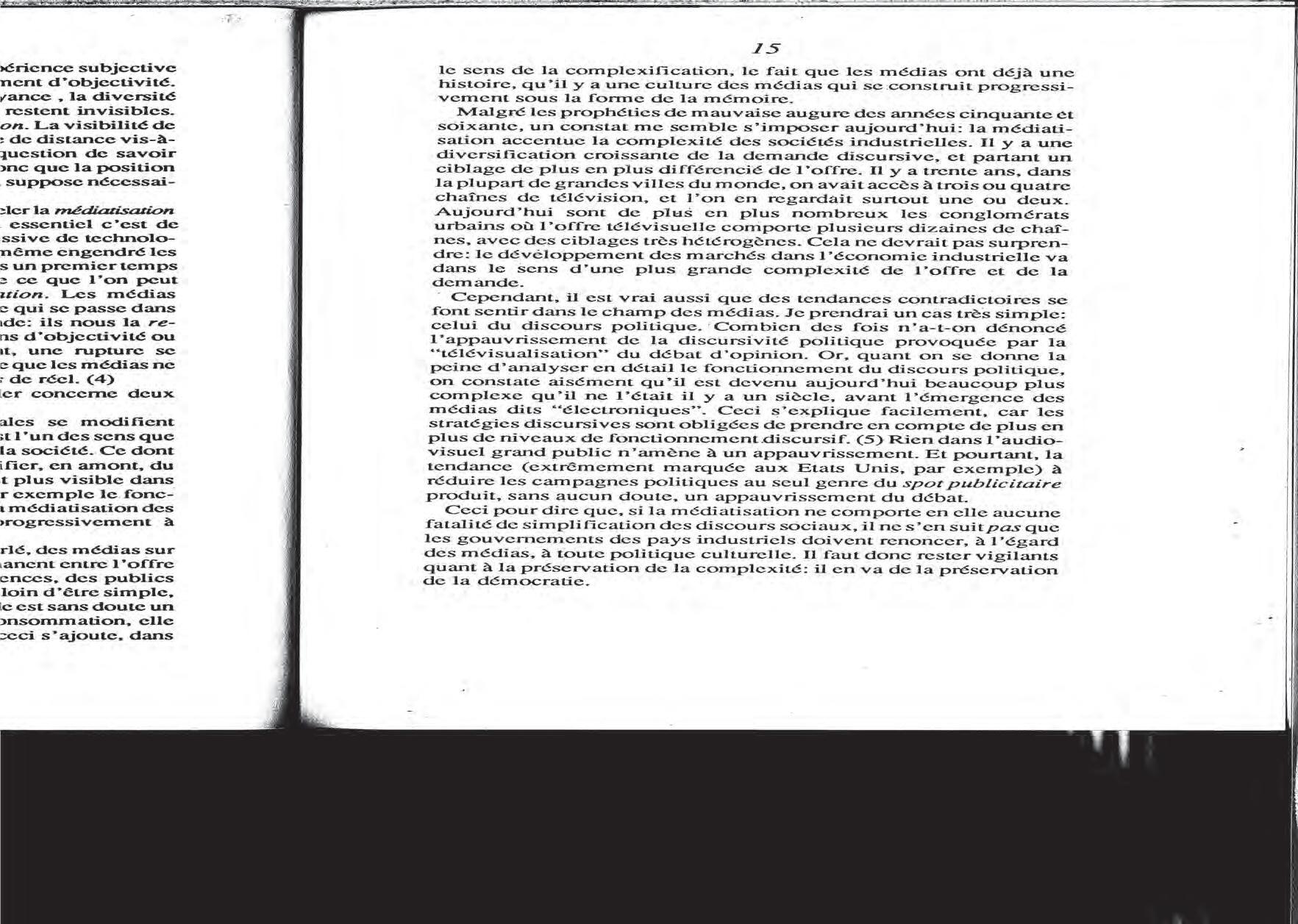 Véron, per la seva banda, aborda l’opinió pública des de la necessitat de mantenir la complexitat discursiva dels mitjans per preservar-ne el seu sentit democràtic, i s’avança a alguns dels reptes de la transició digital, la proliferació mediàtica i el paper actiu del receptor en el procés comunicatiu, entre d’altres. No en va, l’acció mediadora del receptor en el procés comunicatiu guanya importància, ja sigui des del posicionament de Luhmann, entenent l’autoreferència del sistema polític, o des de la perspectiva de Véron, emfatitzada per la transició digital i la capacitat de mesurar constantment les respostes i les modificacions del receptor al missatge original. De fet, no és estrany que aquests articles dialoguin amb aspectes tan actuals com per exemple l’eclosió d’eines d’intel·ligència artificial que permeten, precisament, incentivar la personalització de continguts i la seva adaptació en funció del perfil de la persona que els consumeix i, finalment, els (re)crea.