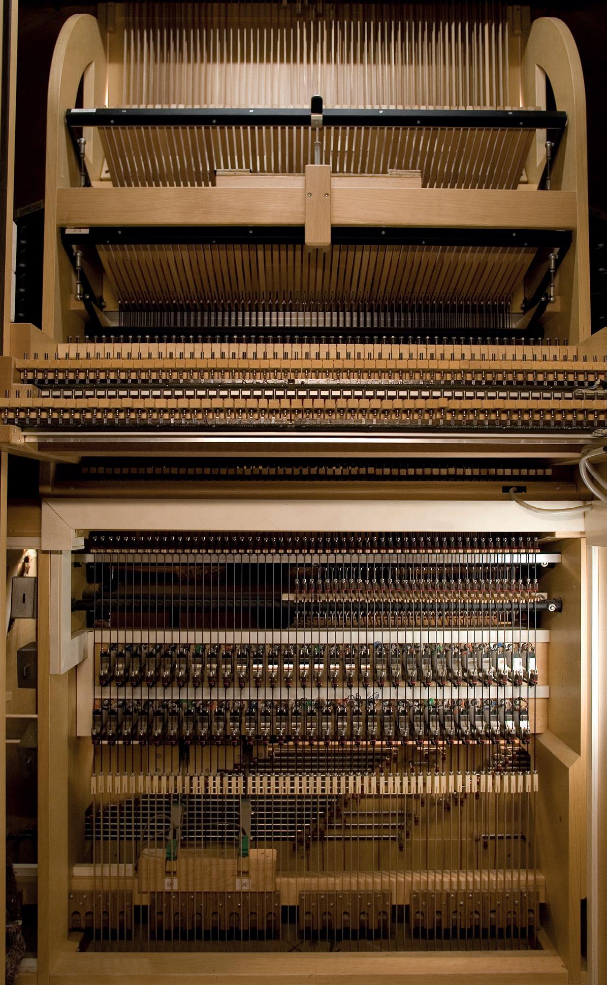 Cal notar, encara, que en la consola inferior, o del presbiteri, tots els acoblaments són elèctrics, ja que en ella totes les transmissions també són elèctriques. Els acoblaments mecànics només són possibles a la consola superior, que és tota ella de tracció mecànica.