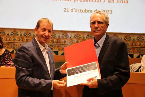 La vicepresidenta de la SCQ, Rosa Maria Marcé, fent entrega del Premi a l’Excel·lència Educativa a María Luisa Salgado Vallvey. Fotografia cedida per l’IEC. El president de la SCQ, Gregori Ujaque, fent entrega del Premi a l’Excel·lència Científica al professor Jaume Veciana Miró. Fotografia cedida per l’IEC.