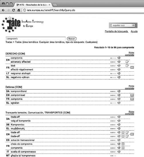 Valoració? Crec que cal reconèixer la base de dades IATE com una font de terminologia (i fraseologia) específica de primer ordre en un ampli ventall de camps temàtics. Per a fer-vos una opinió pròpia si no ho havíeu fet abans, a títol d’exemple us convido a fer-ne la prova amb els falsos amics compromis i dérogation.