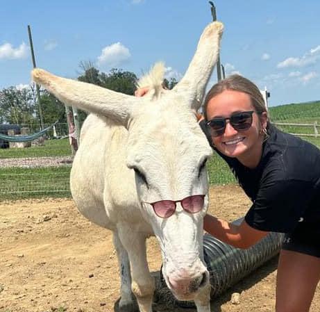 This summer she had the opportunity to intern at Local Homestead Products LLC, where she gained hands-on experience working at an on-farm market. This photo is one of her favorites, featuring Natalie and Wilton the donkey rocking sunglasses on a beautiful day!
