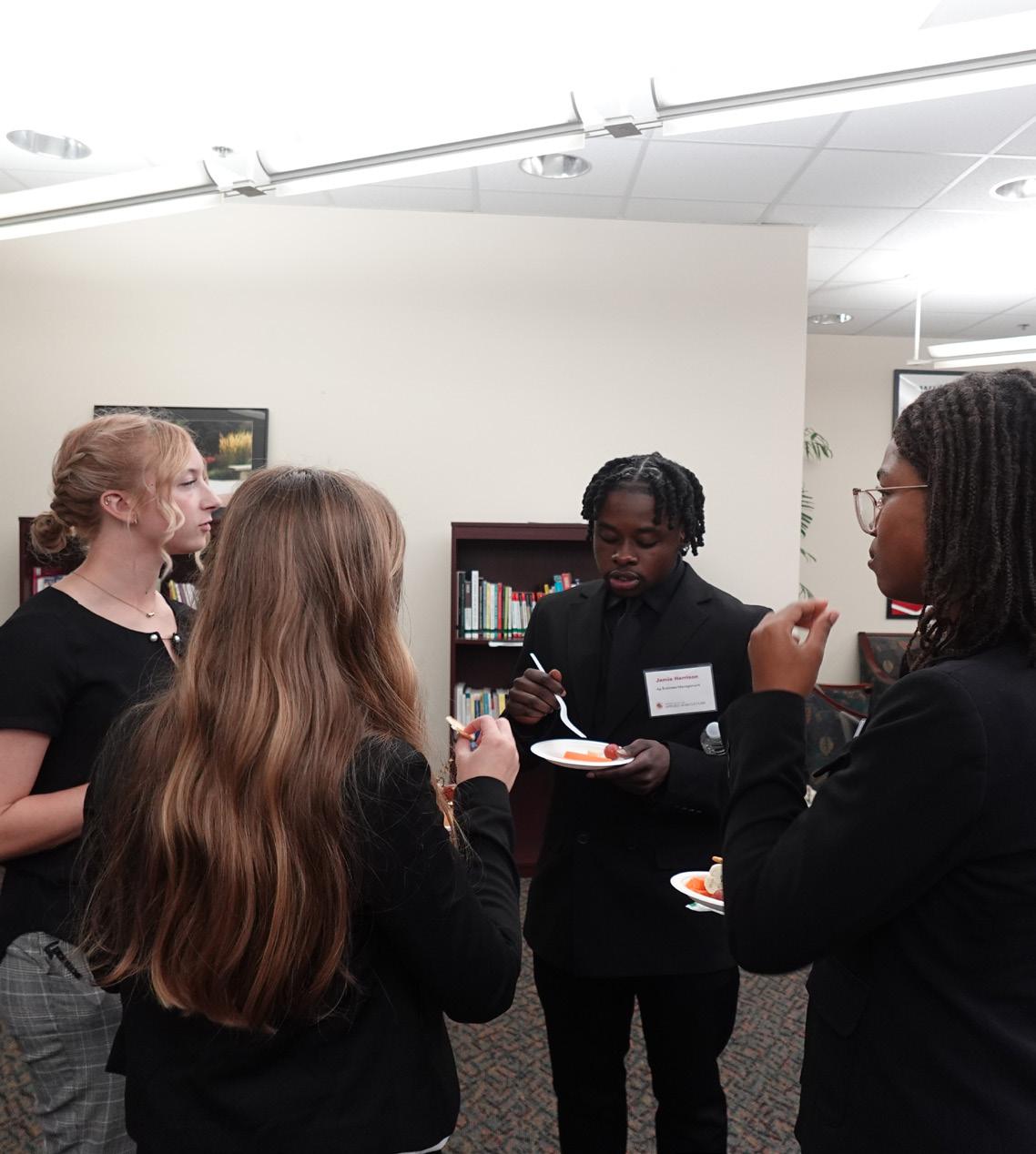 1. Students enjoy meeting each other and comparing schedules at "Pizza & Plants" to kick off the Fall 2024 semester.