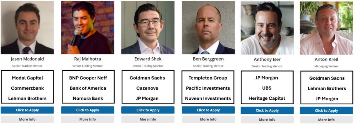 • For Q2 2026, Remote students have the choice of Jason Mcdonald, Raj Malhotra and Anthony Iser, supported by ITPM Managing Partner and Junior Trading Mentors Dieter Plas and Alessandro Ameli.