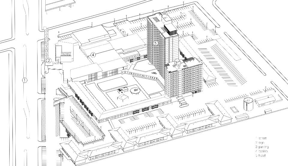 its real quality can be witnessed, namely the high-rise building as a hotel containing all the city facilities. Therefore, the high-rise can be seen as a form of a town, a building that includes the life of a city.