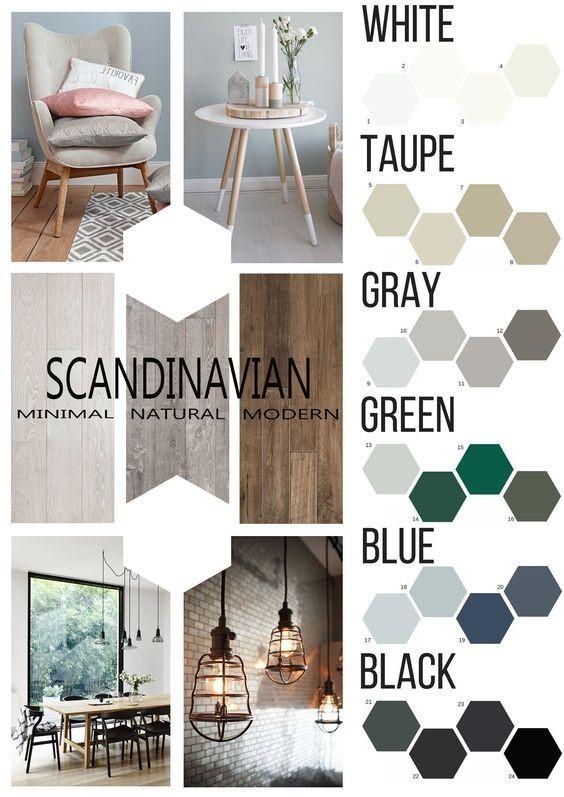 While Scandinavian style interiors vary and may include different influences like industrial or boho, they usually feature a similar Nordic color palette. Scandinavian interiors and furniture designs feature white, off-white, and gray hues along with muted blue and green colors. Darker accents can also create bold color contrasts. Other hues include beige and cream hues as well as muted brown colors, as these interiors generally feature an abundance of wood flooring and wood furniture.