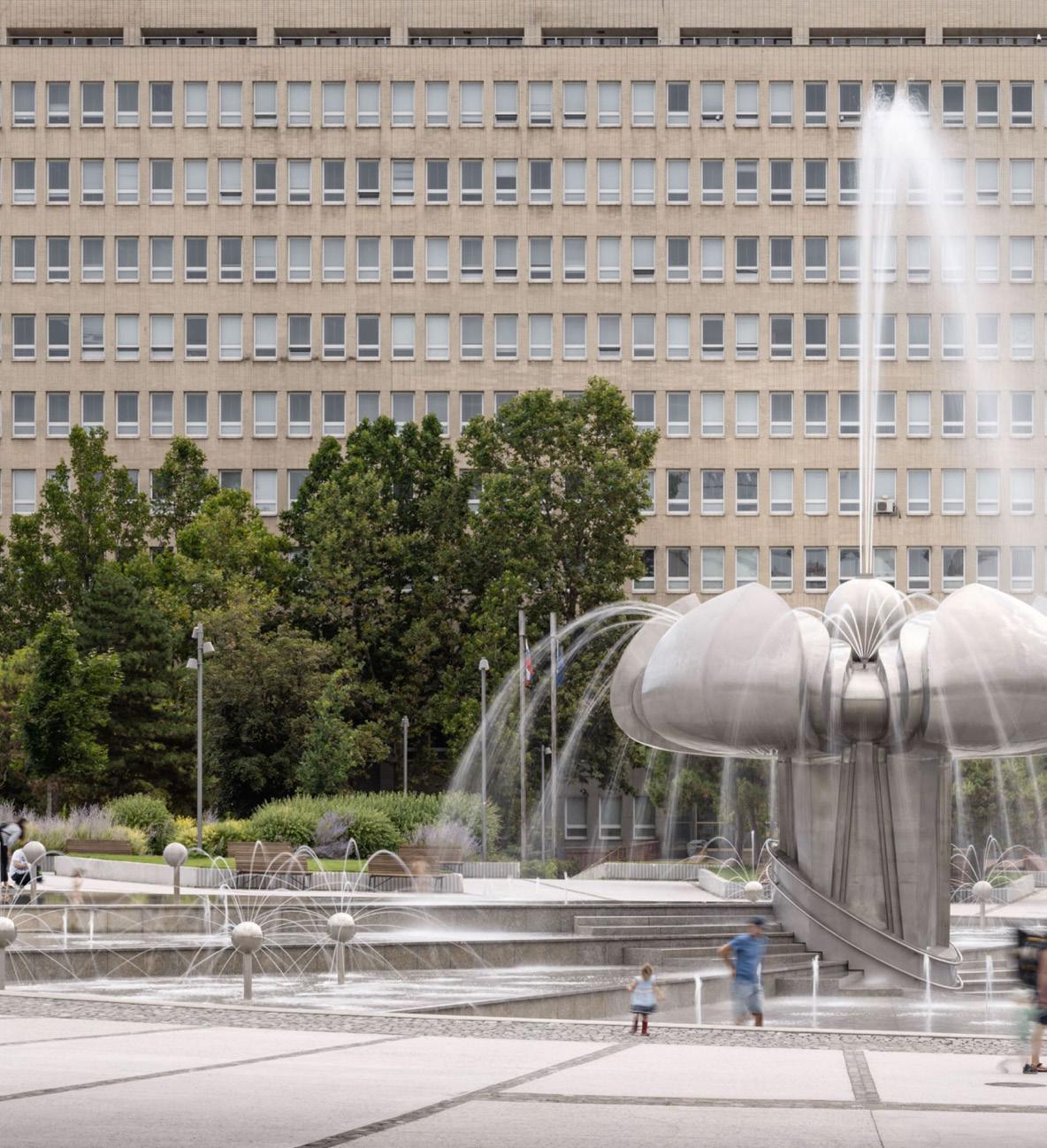 Others: Stanislav Režný (co-author of the fountain reconstruction and author of the technical solution), Boris Belan (metal structure designer), K. Lacko (original designer of the square and original designer of the fountain—sculptor), T. Bártfay (original designer of the square—sculptor), V. Droppa Sr. (original designer of the square and original designer of the fountain – architect), J. Hlavica (original designer of the square and original designer of the fountain – architect)