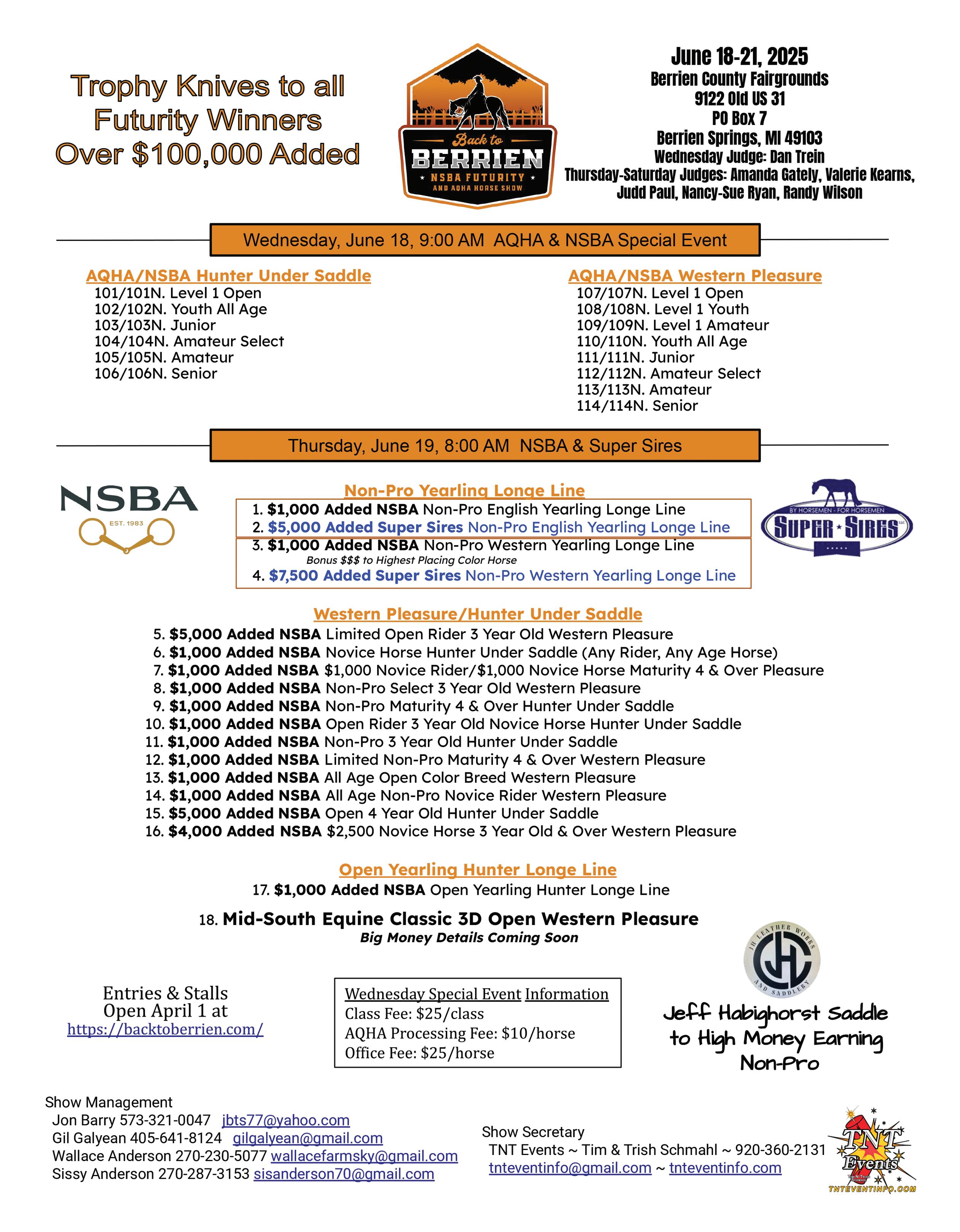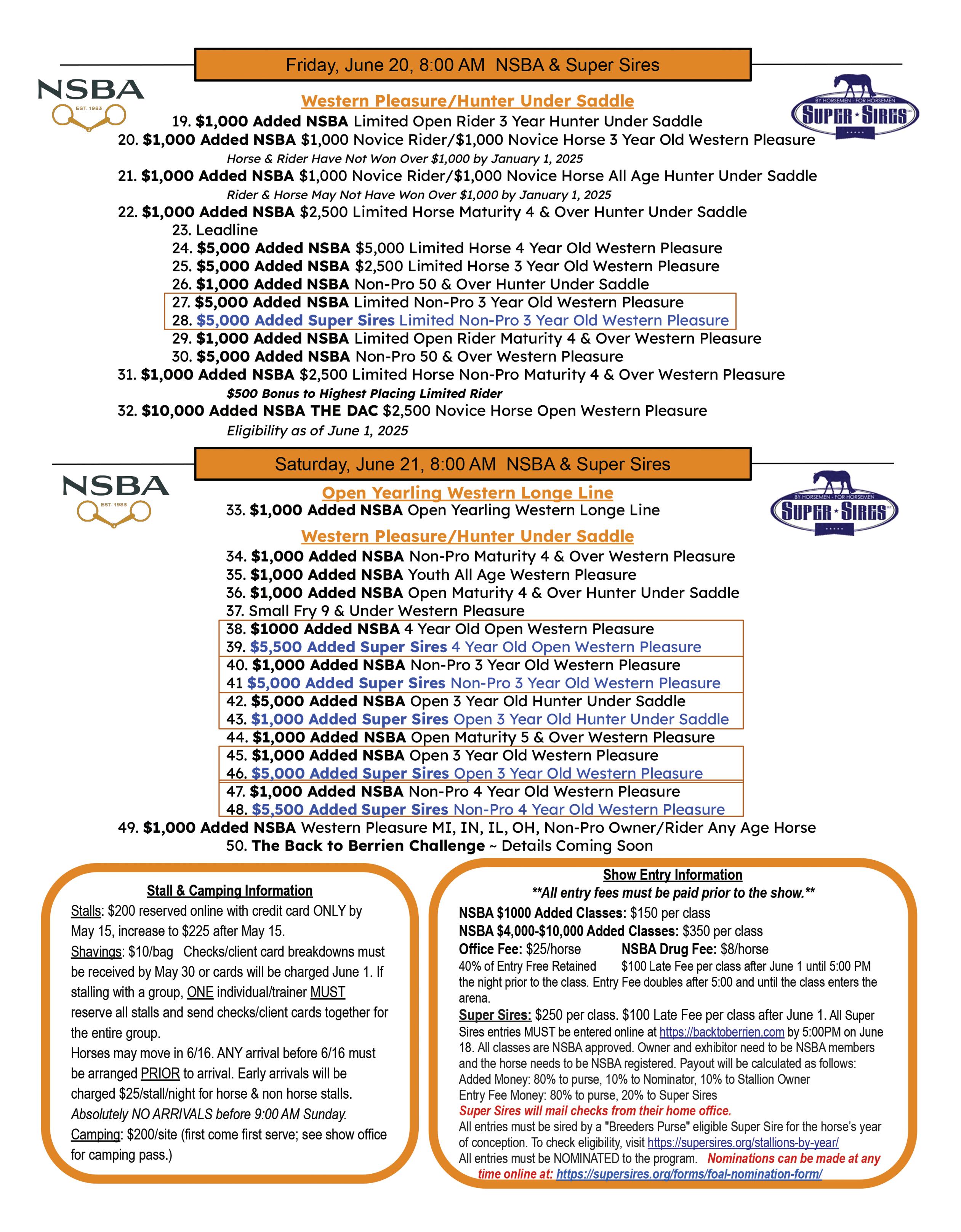 Green Non-Pro classes will follow NSBA’s Green Horse eligibility as outlined in NSBA Rule #86.