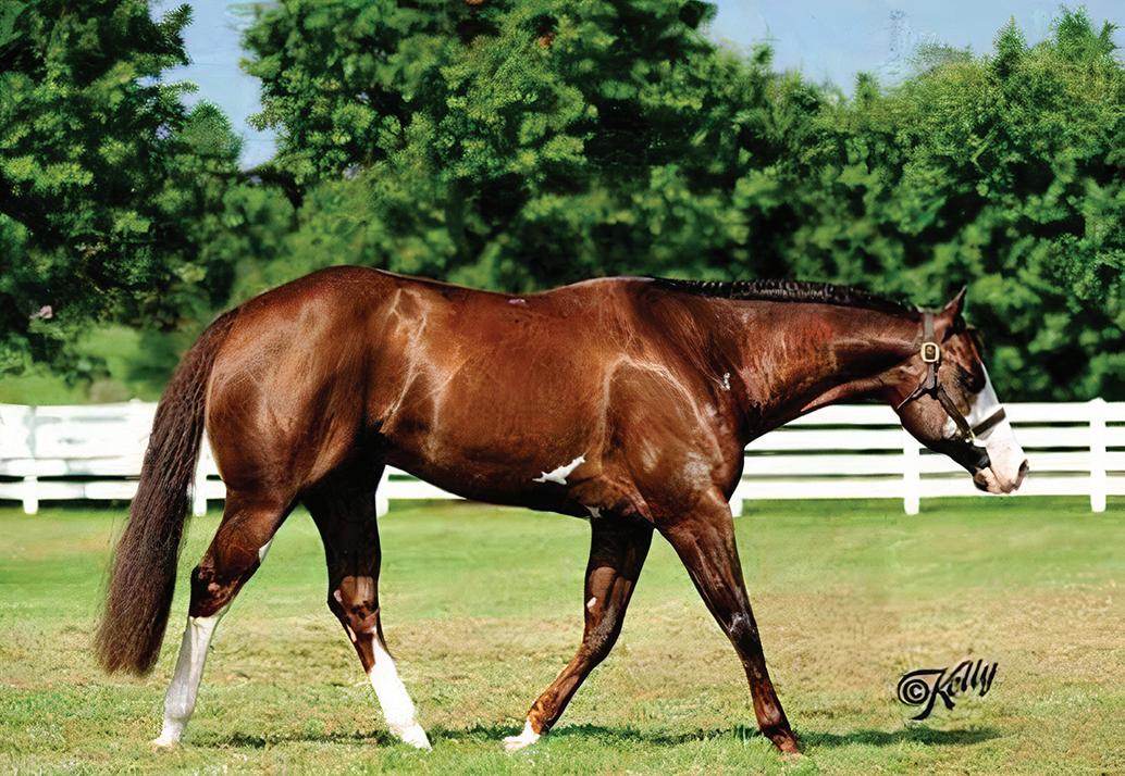 Acadamosby Award – Born the night of the 1990 Academy Awards, Acadamosby Award, or “Oscar,” lived up to his winning name all his life. By Mosby and out of Madcap Maggie, Oscar was bred by Jamee Golan Bornstein of East Troy, Wisconsin. The gelding’s long-time owner was Chelsea Knox of San Clemente, California. Oscar is the only three-time AQHA Superhorse (reserve twice), in the top three AQHA leading horses by number of world championships, had a total of 38 AQHA world and reserve world championships, was a 21-time All American Quarter Horse Congress champion and four-time Congress all-around champion.