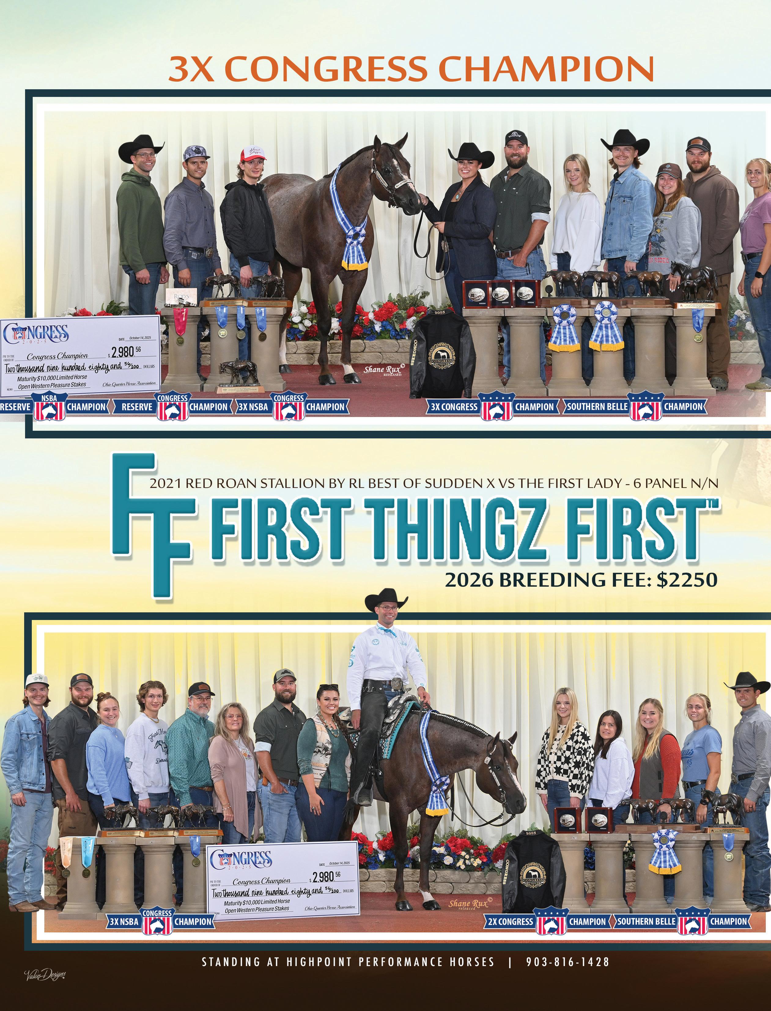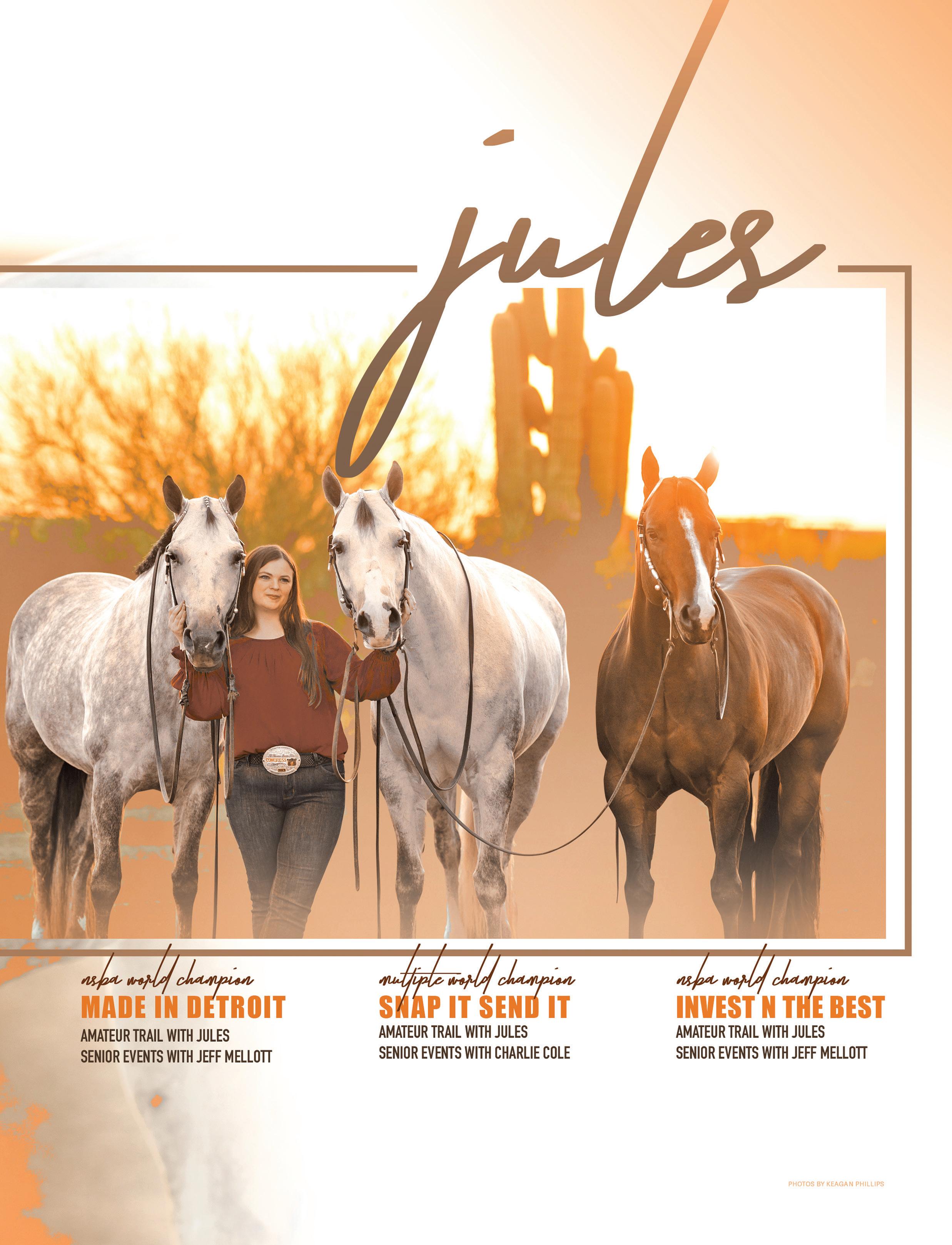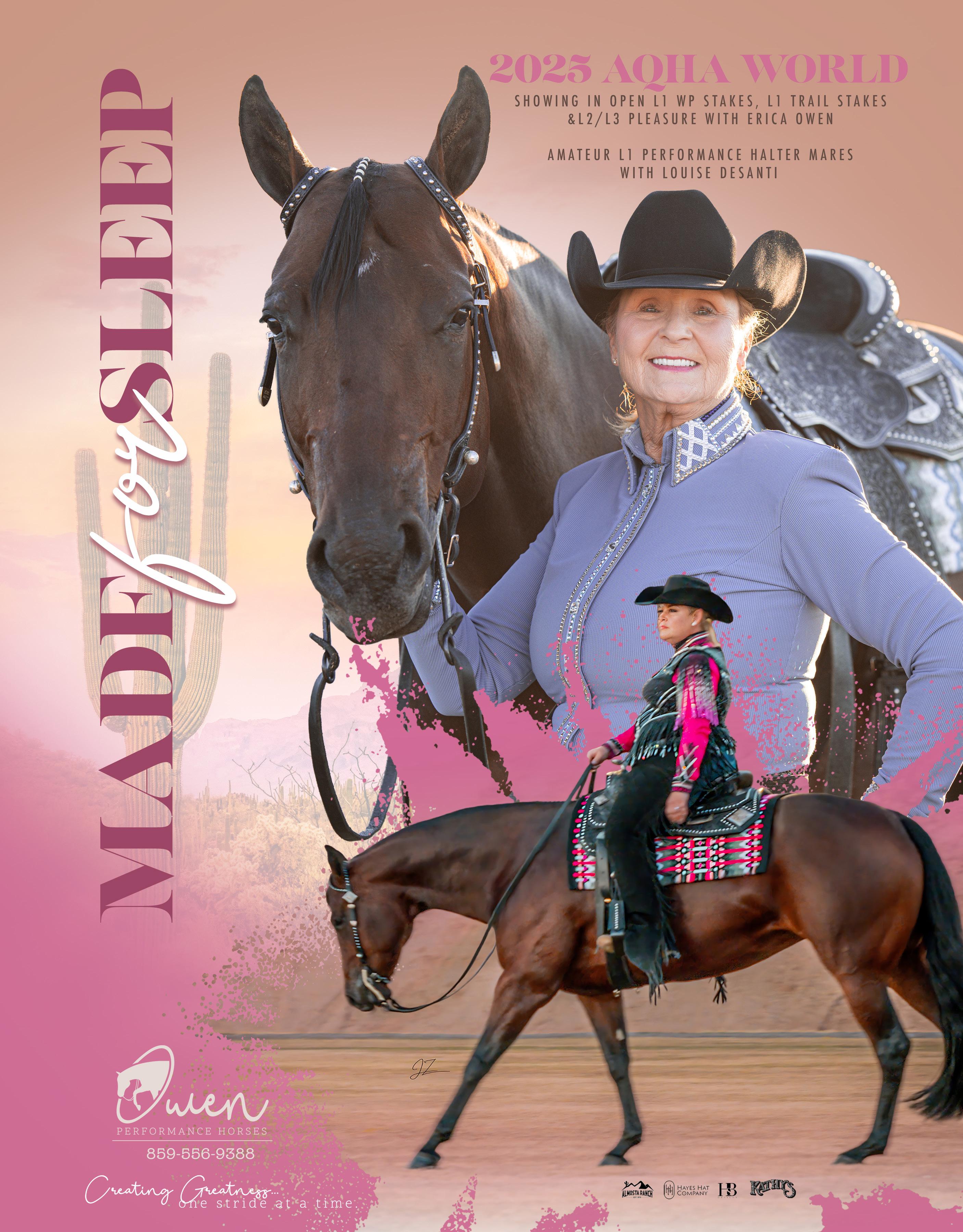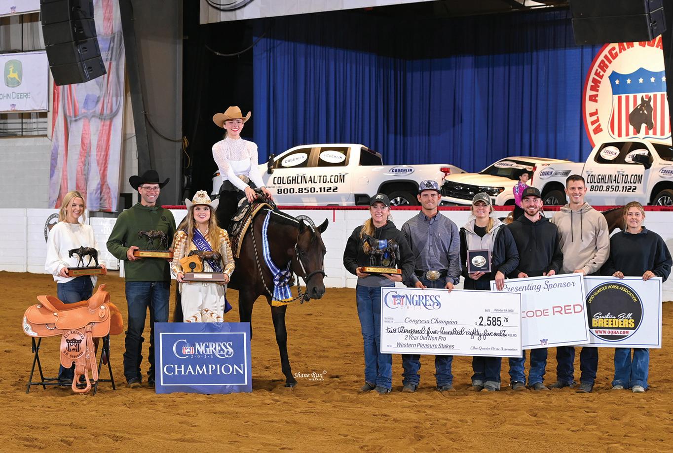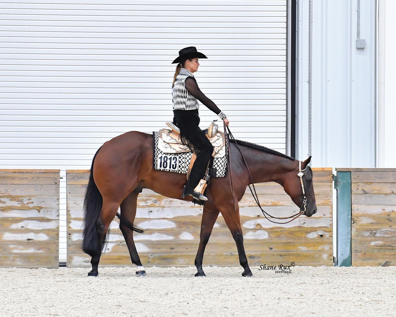 a 2018 sorrel mare, is a successful Western Pleasure and all-around contender with over $60,000 in lifetime earnings.