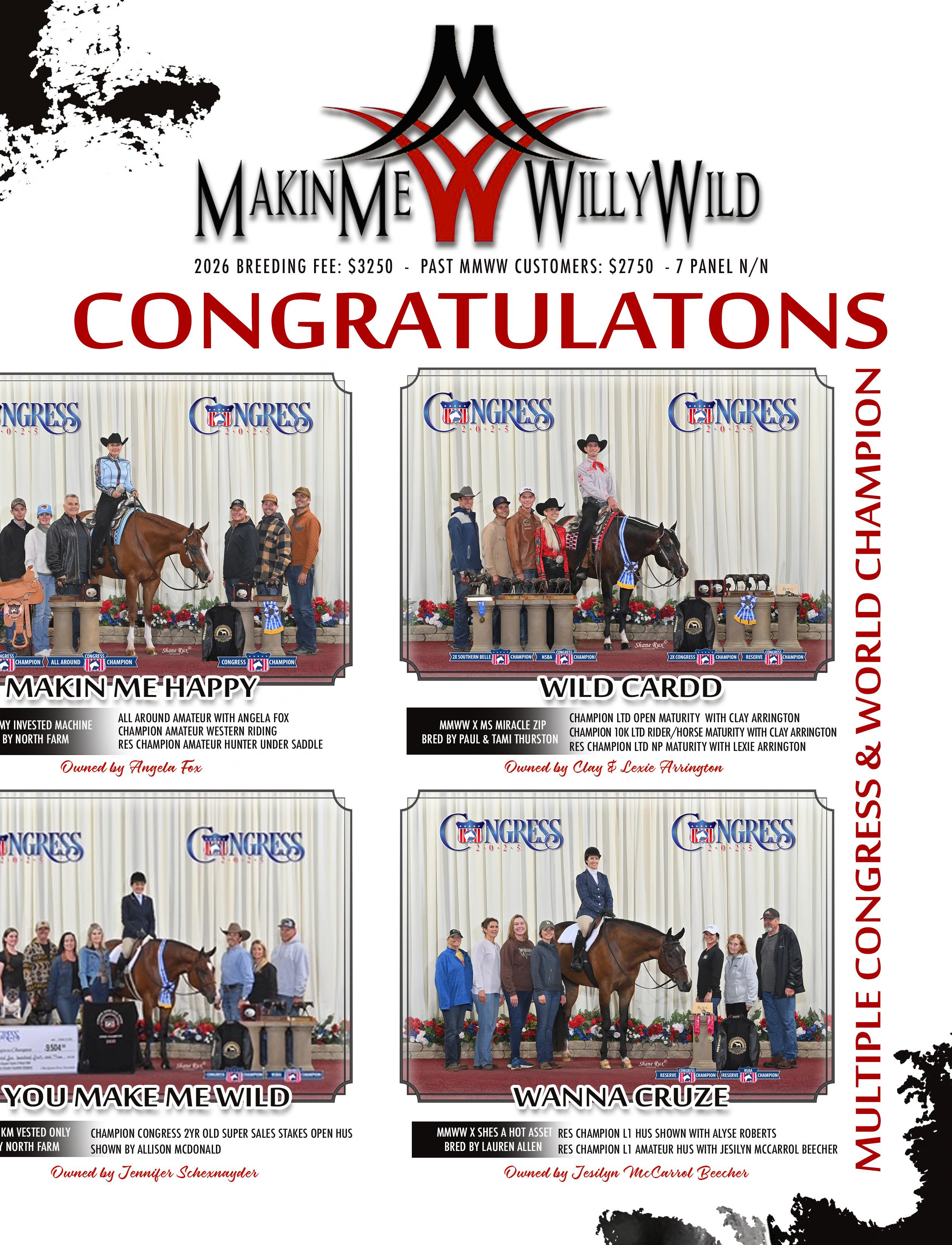 “He started off so strong with a win in the Super Sales Stakes and the 2-Year-Old Non-Pro,” Walker said. “I think it is a very big testament to Hollywood’s mind and Aaron‘s training ability to have a non-pro show a 2-year-old stud. Studs aren’t easy for anyone but we were beyond excited to win the non-pro twos at the Congress this year with him.”