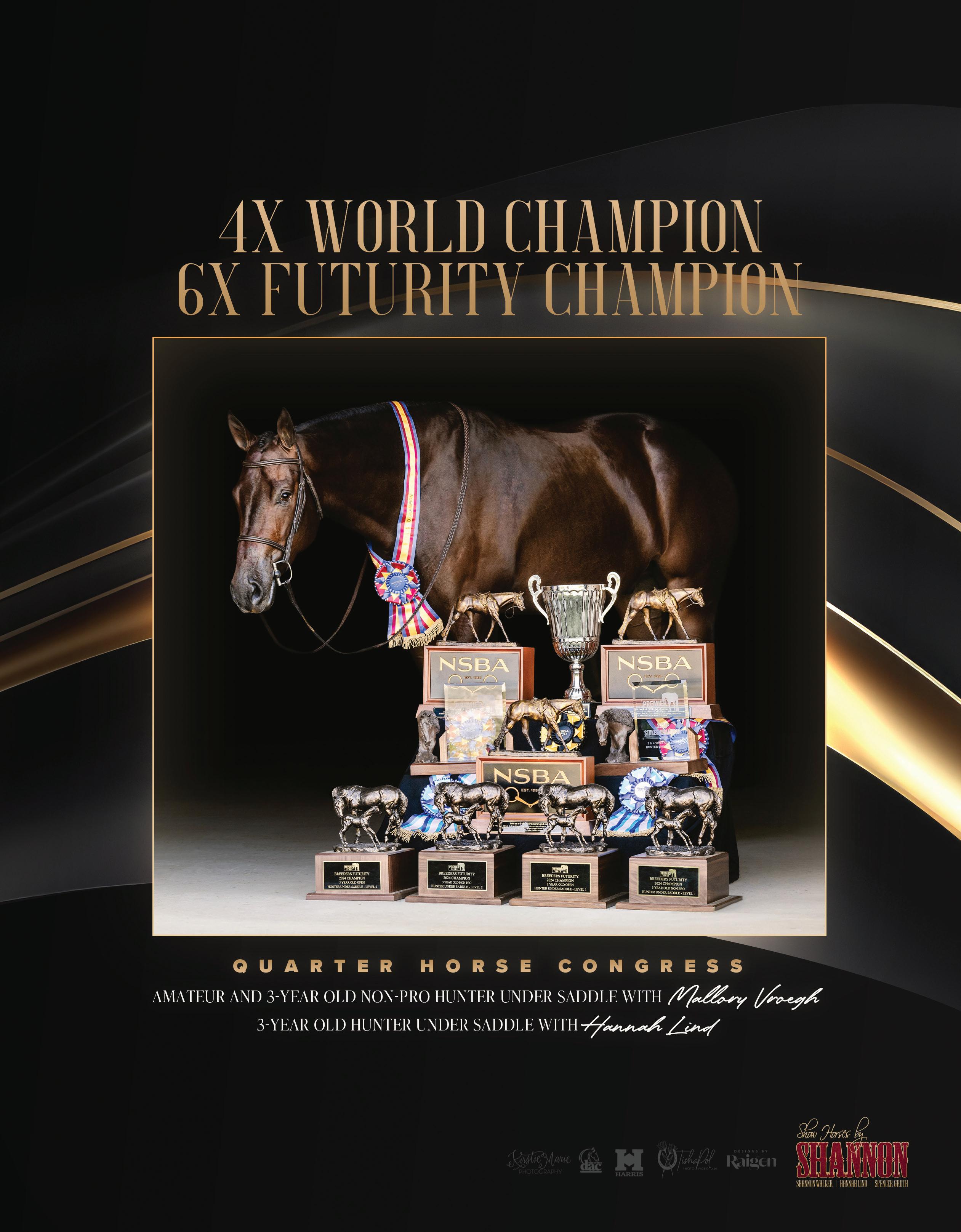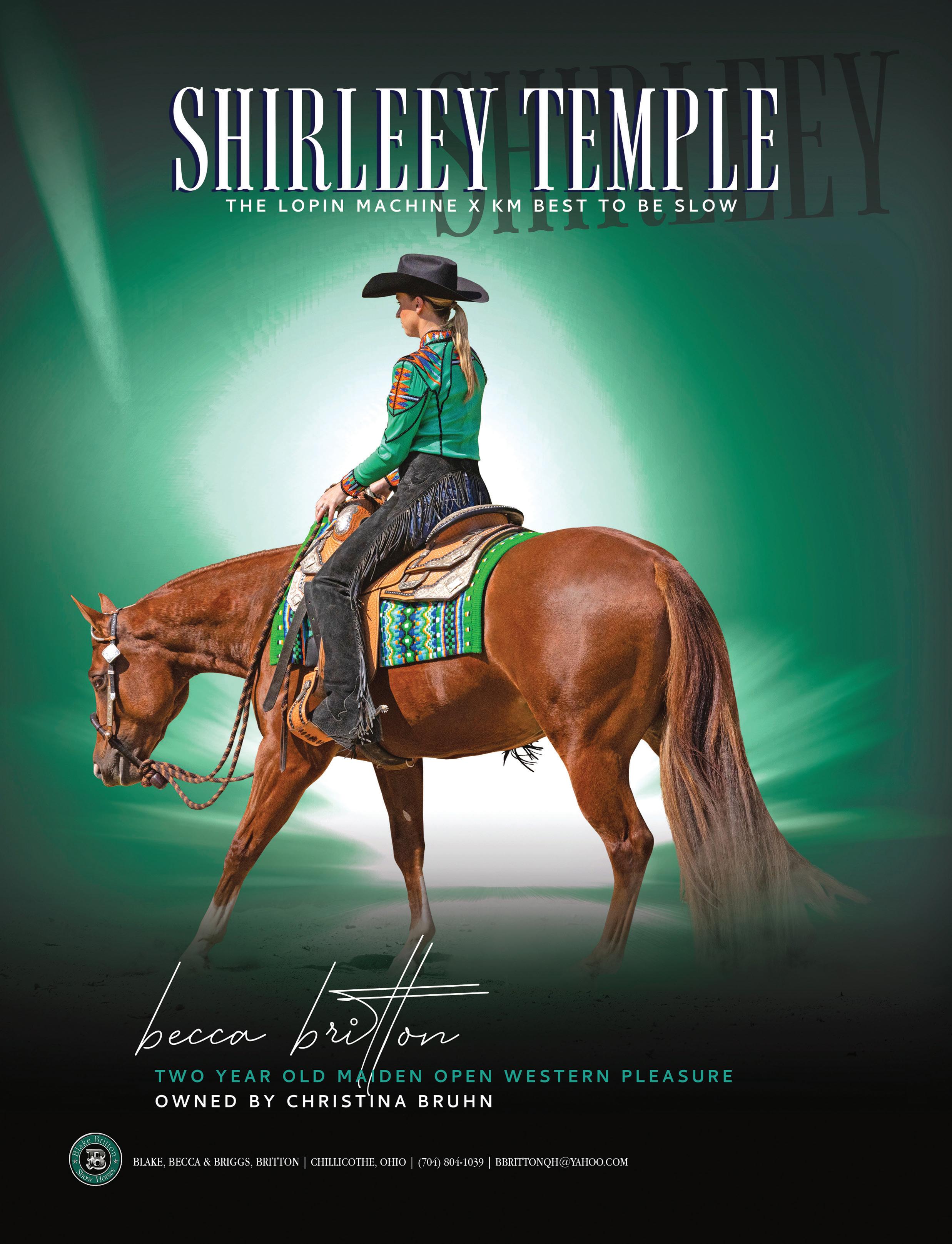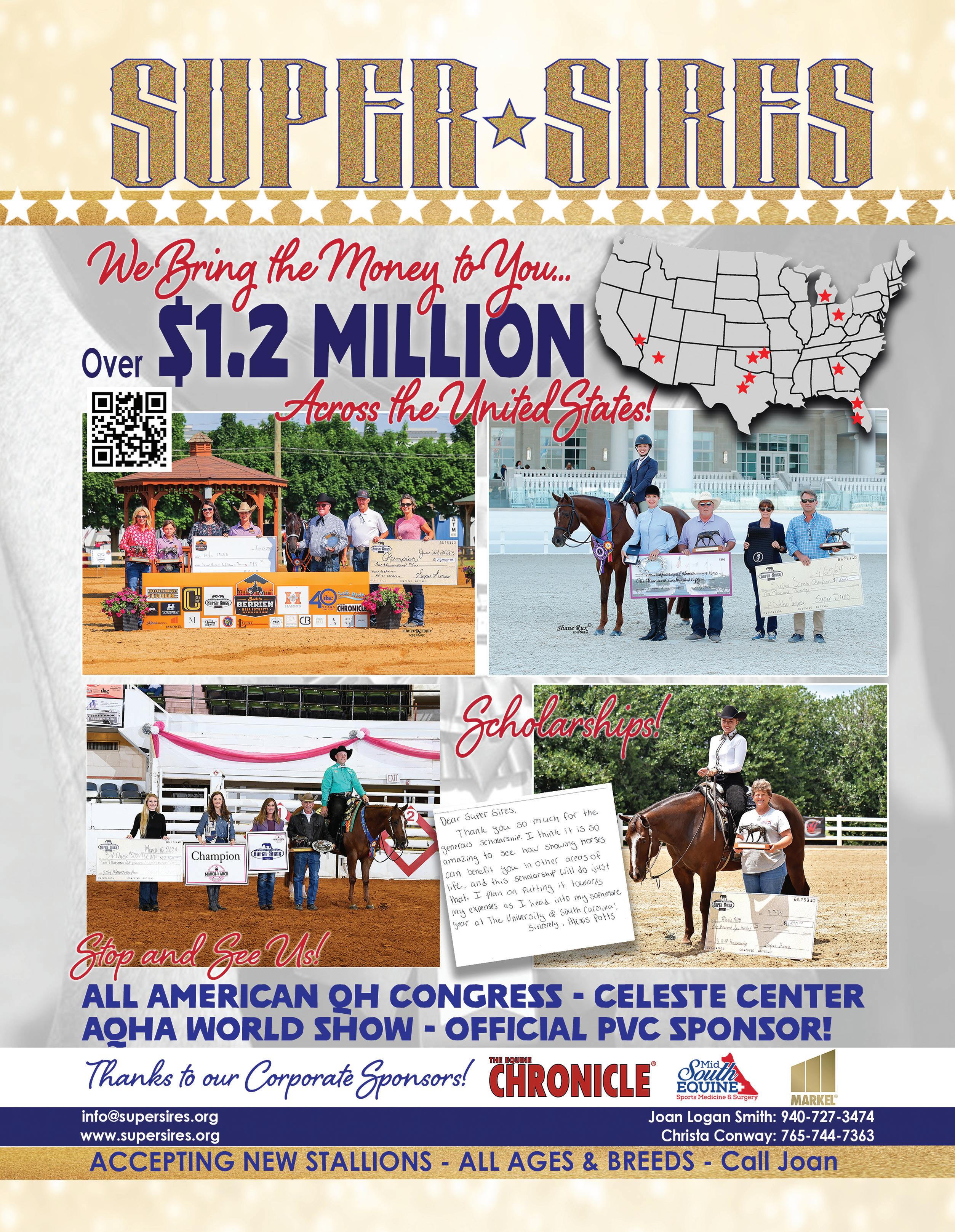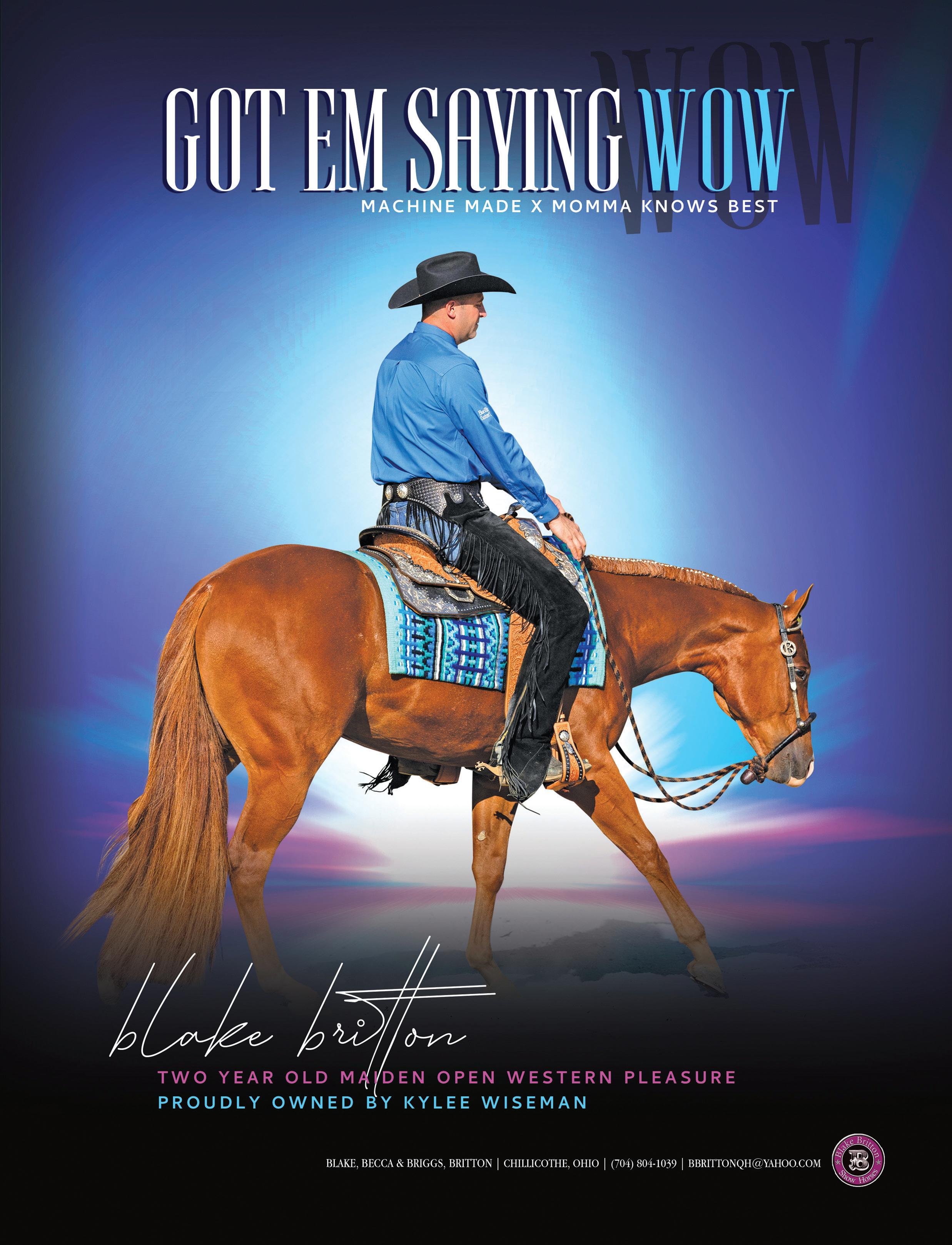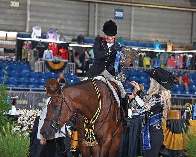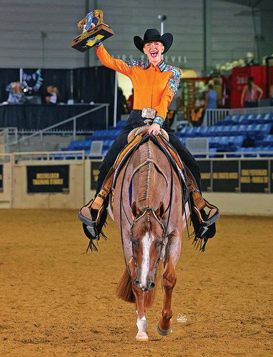 SOMETIMES IT SEEMS LIKE OUR world has gone mad so, with a briskness in the air this October, it seems like a good time to take a breath and just enjoy our horses. That’s what Talli Terlizzi is going to do. She has several horses showing at the Quarter Horse Congress this month but one will be especially meaningful for the Ocala, Florida Non-Pro competitor. Heres To The Blue, her 2020 bay stallion by Good I Will Be and out of The First Ride will be showing at the Congress and the AQHA World Show and then he’s headed off to the breeding shed for the first time. Read all about this promising young sire (page 18). Speaking of the Congress, there’s no better place to see all the top show fashions in one place. Did you ever wonder how a competitor selects the perfect outfit? Three top designers share their secrets (page 64) on how they help clients look their best in the show pen. And while you are at it, take a stroll through Congress Hall or elsewhere around the grounds at the Quarter Horse Congress and take a look at all of the new products and services available to horse enthusiasts. You can even find a show hat, like the one featured on this page from Brinks Hattery (located in Congress Hall) to match that perfect show outfit. But it takes more than a perfect look to be successful in the pen. Your horse needs to perform his best to land you at the top of your class. We talked to professional trainers Steve Meadows and Brad Jewett (page 41) about how they sometimes have to go back to square one when a horse in their training program hits a wall. This month we also feature profiles on Youth competitor Madeline Rippeon, of Maryland (page 106); Amateur competitor Ali Hubbel, of Pennsylvania (page 124) and professional trainer Kyra Ley, of Montana (page 76). So take some time to relax this month and appreciate what you have and the friendships you’ve forged in the horse industry.