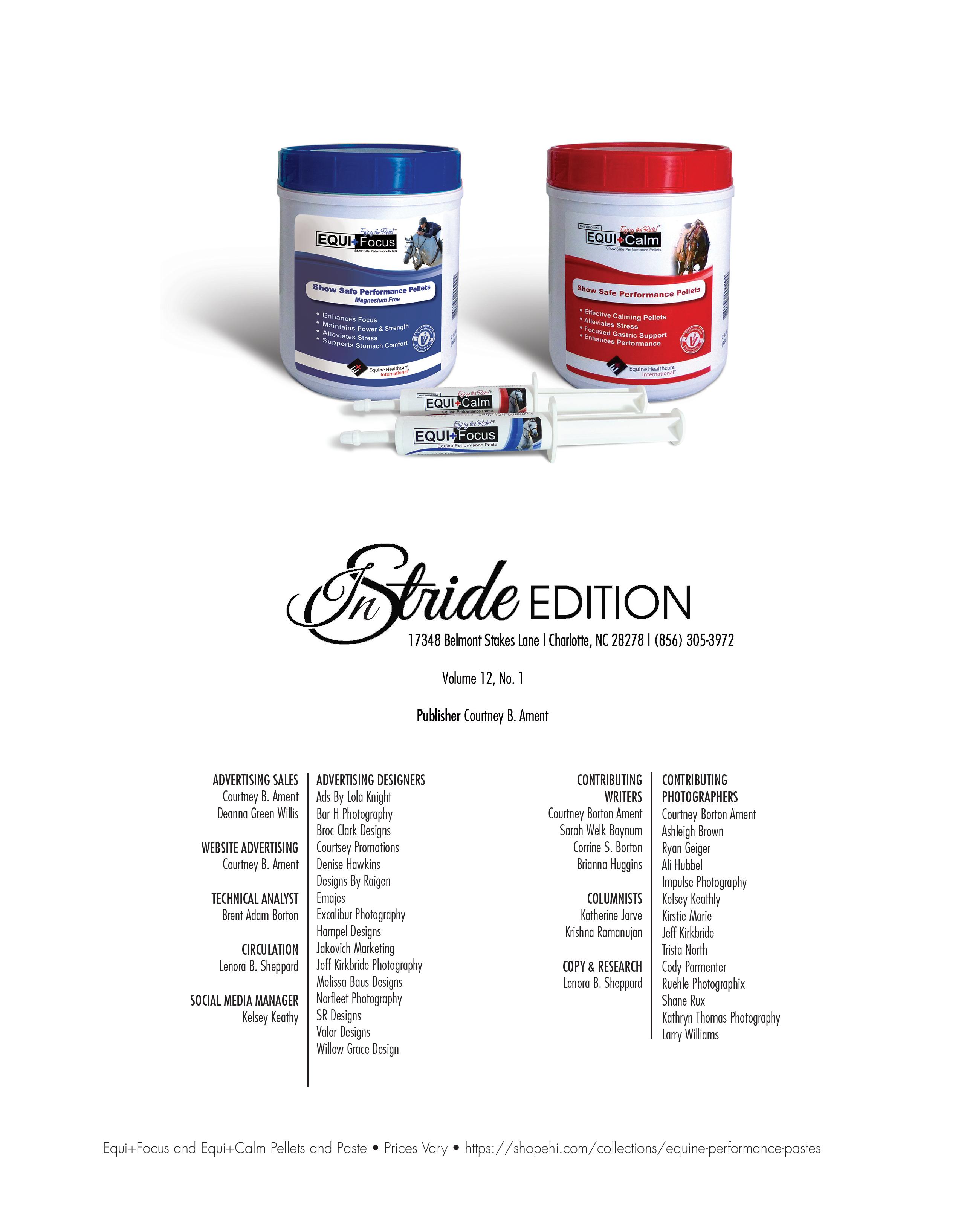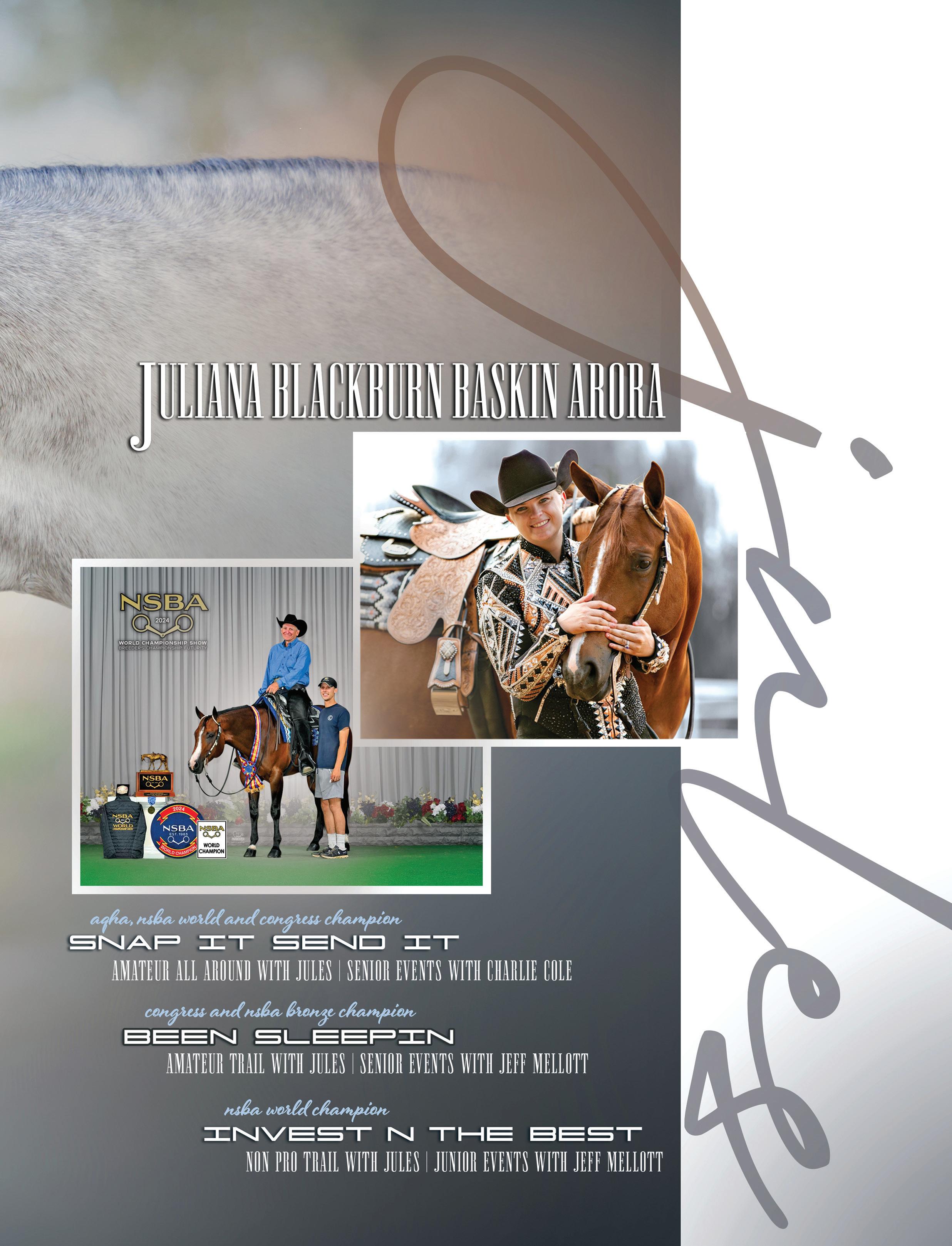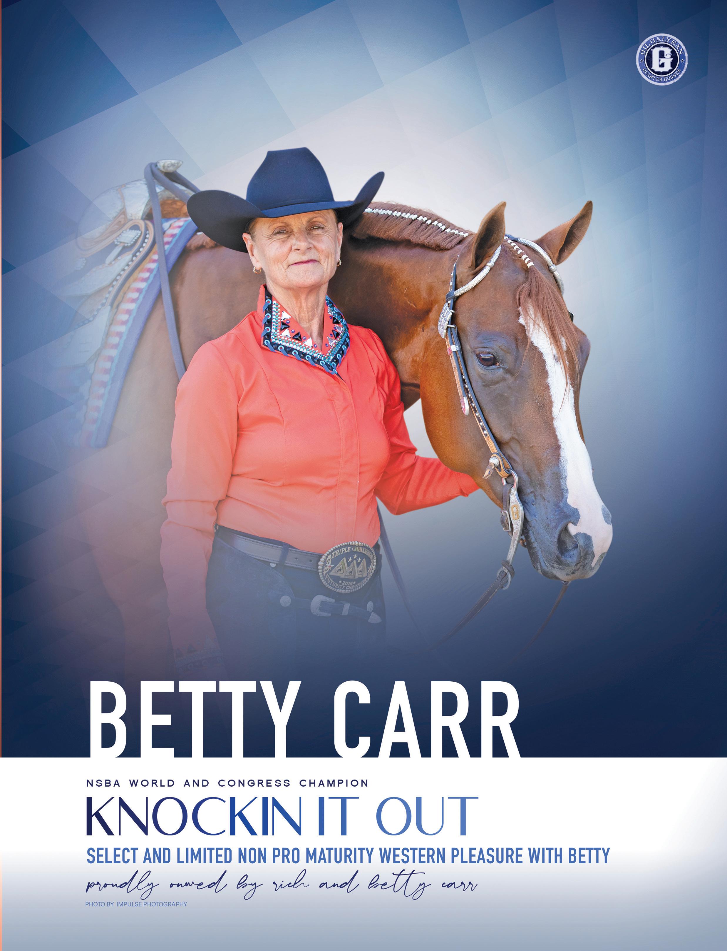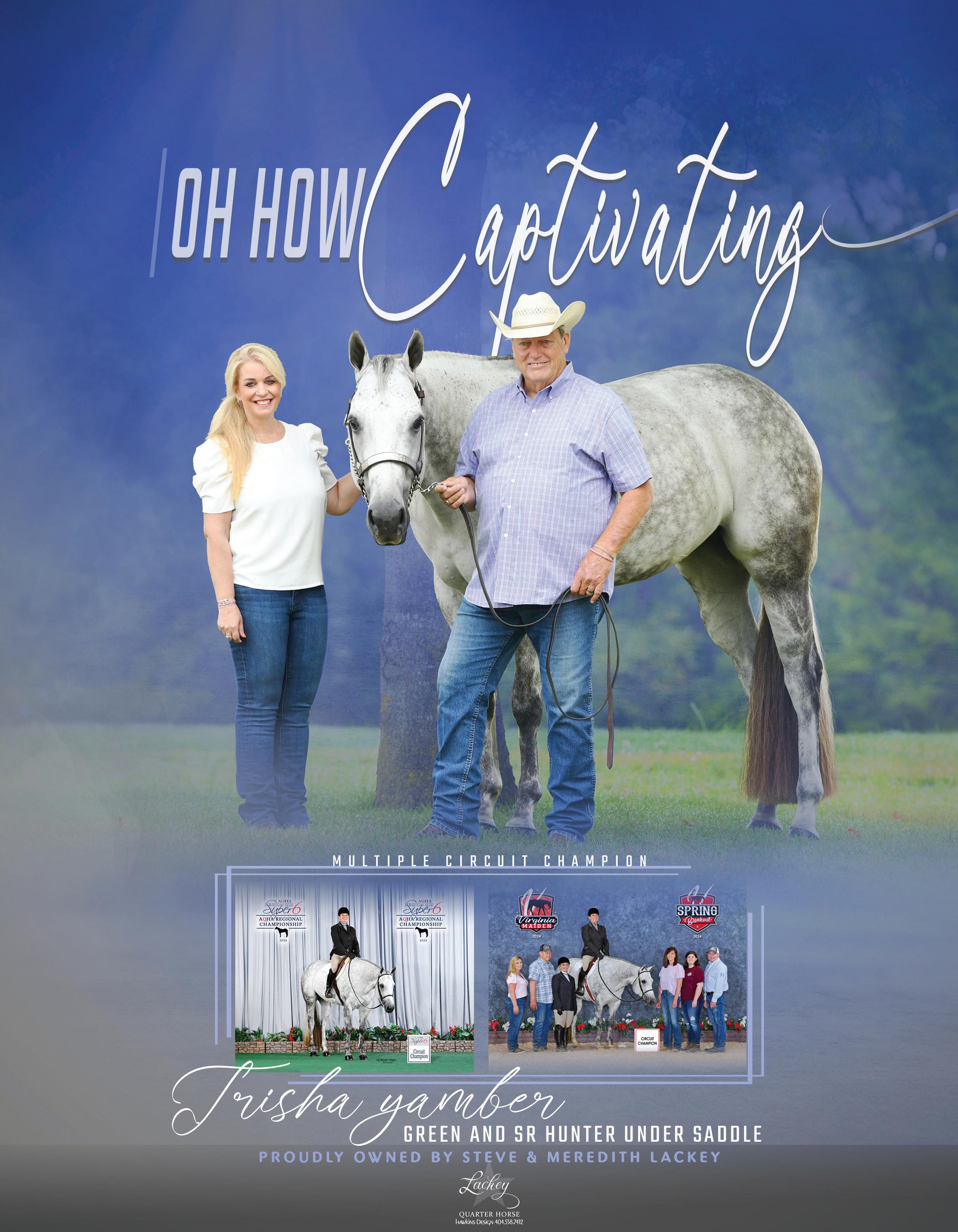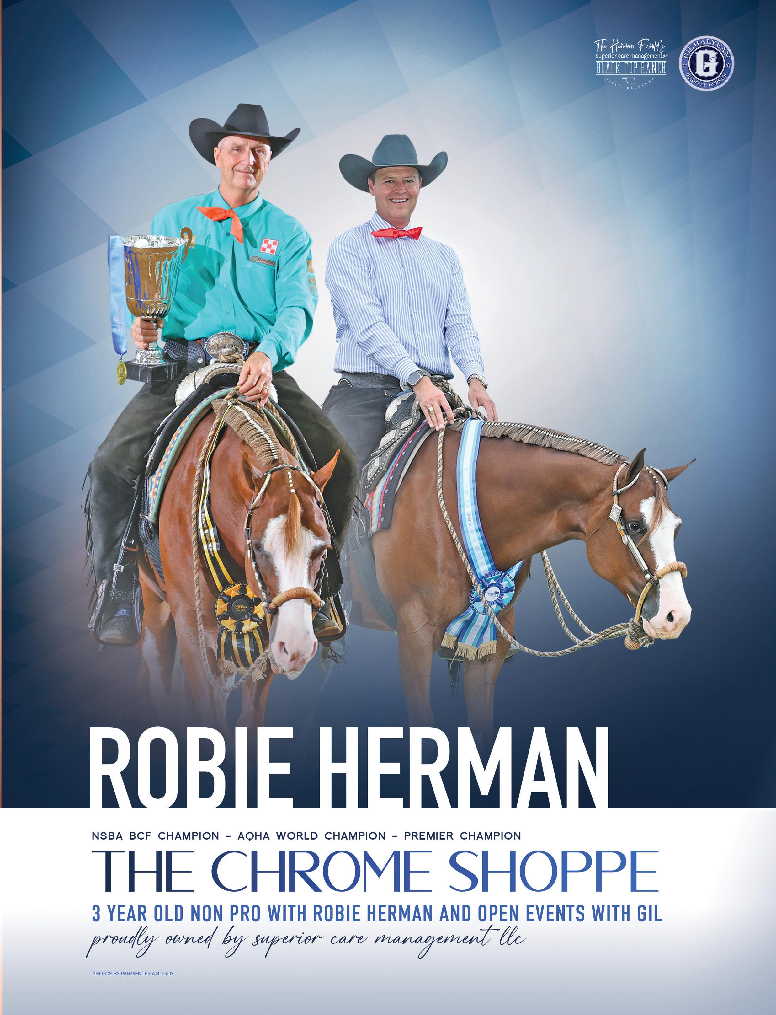 SOMETIMES IT SEEMS LIKE OUR world has gone mad so, with a briskness in the air this October, it seems like a good time to take a breath and just enjoy our horses. That’s what Talli Terlizzi is going to do. She has several horses showing at the Quarter Horse Congress this month but one will be especially meaningful for the Ocala, Florida Non-Pro competitor. Heres To The Blue, her 2020 bay stallion by Good I Will Be and out of The First Ride will be showing at the Congress and the AQHA World Show and then he’s headed off to the breeding shed for the first time. Read all about this promising young sire (page 18). Speaking of the Congress, there’s no better place to see all the top show fashions in one place. Did you ever wonder how a competitor selects the perfect outfit? Three top designers share their secrets (page 64) on how they help clients look their best in the show pen. And while you are at it, take a stroll through Congress Hall or elsewhere around the grounds at the Quarter Horse Congress and take a look at all of the new products and services available to horse enthusiasts. You can even find a show hat, like the one featured on this page from Brinks Hattery (located in Congress Hall) to match that perfect show outfit. But it takes more than a perfect look to be successful in the pen. Your horse needs to perform his best to land you at the top of your class. We talked to professional trainers Steve Meadows and Brad Jewett (page 41) about how they sometimes have to go back to square one when a horse in their training program hits a wall. This month we also feature profiles on Youth competitor Madeline Rippeon, of Maryland (page 106); Amateur competitor Ali Hubbel, of Pennsylvania (page 124) and professional trainer Kyra Ley, of Montana (page 76). So take some time to relax this month and appreciate what you have and the friendships you’ve forged in the horse industry.