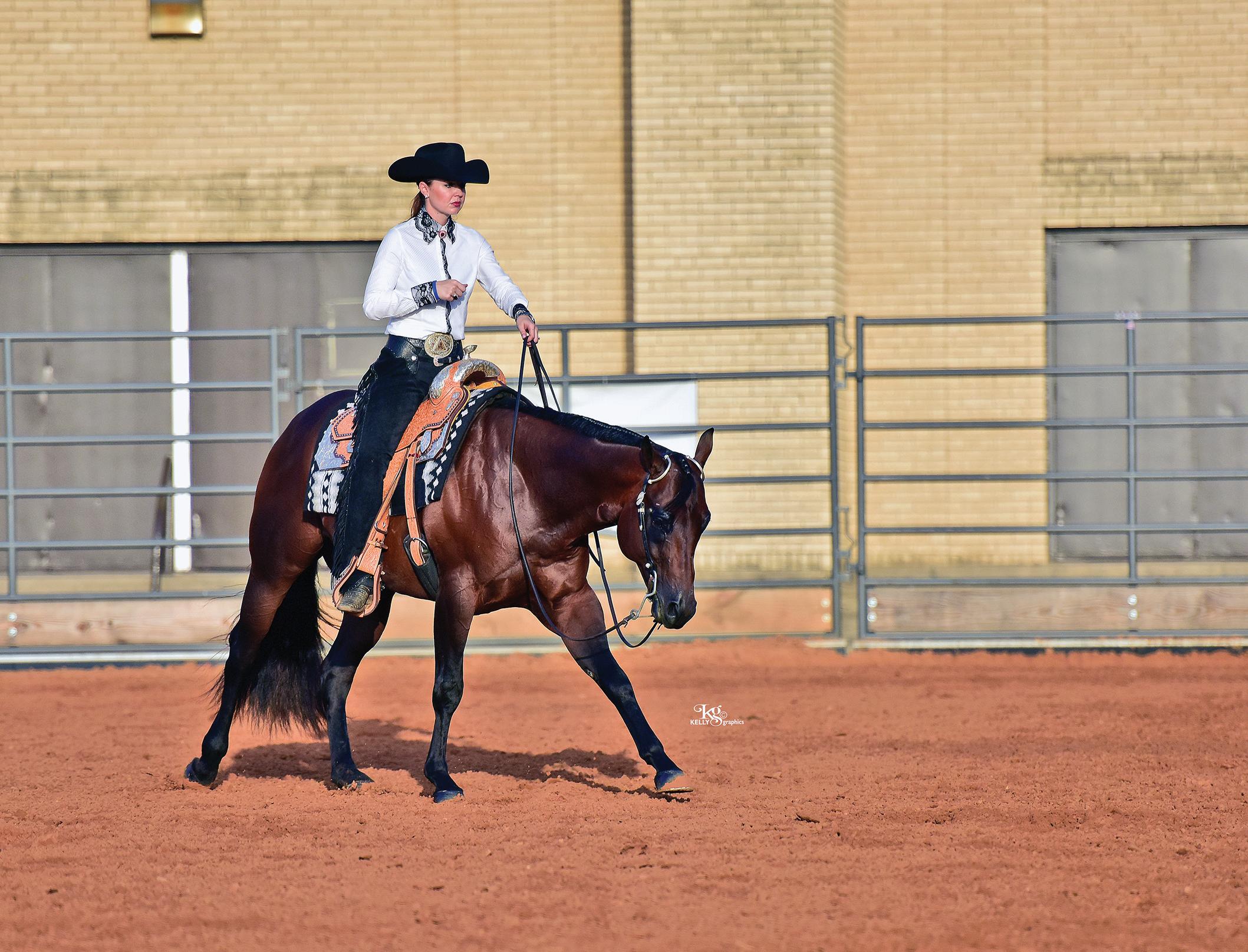 • Hot Dayum, a 2020 bay mare by One Hot Krymsun out of Injoy The Ride, in training with Kelby. She is being shown in Green Western Pleasure and 10k Maturity Western pleasure classes.