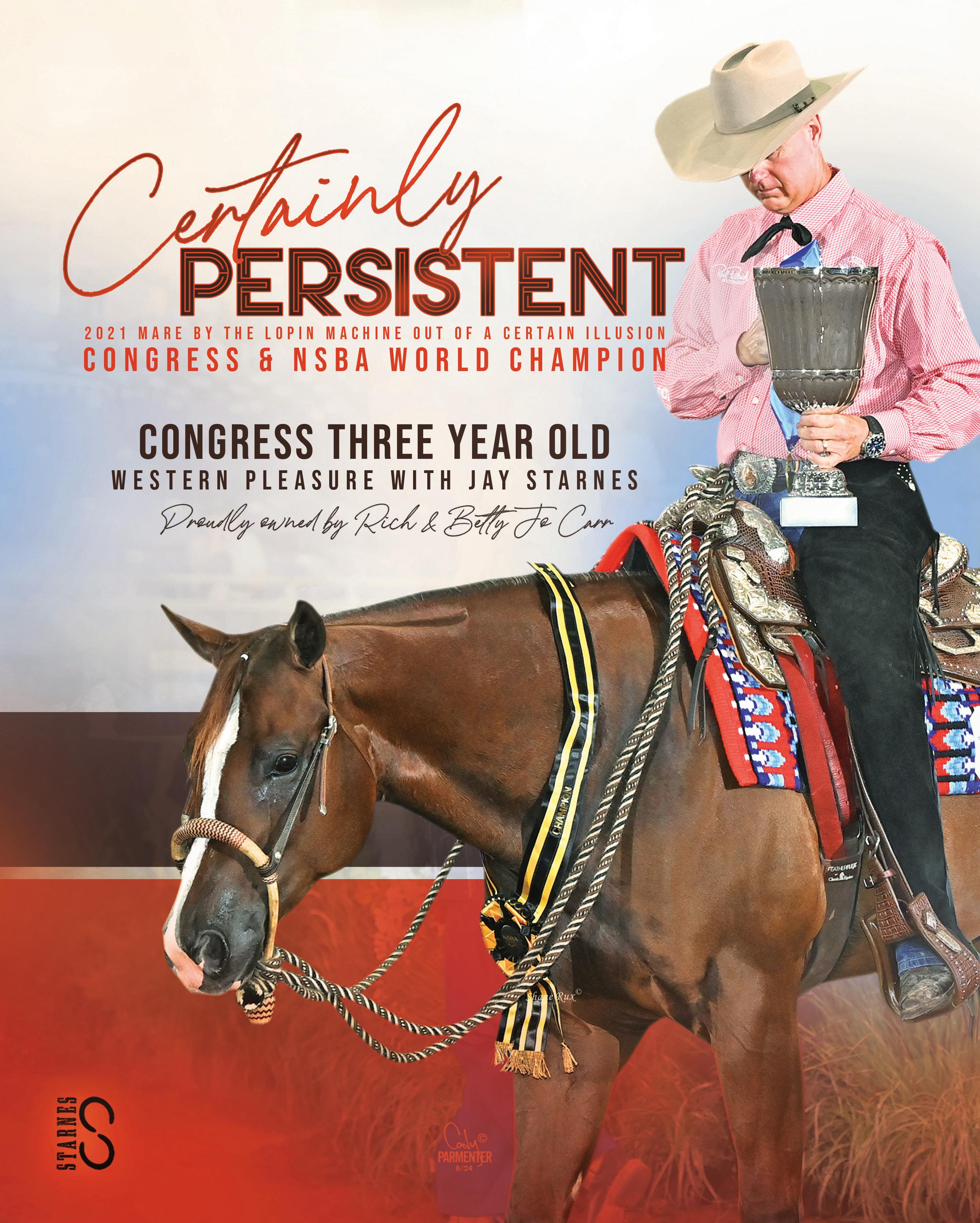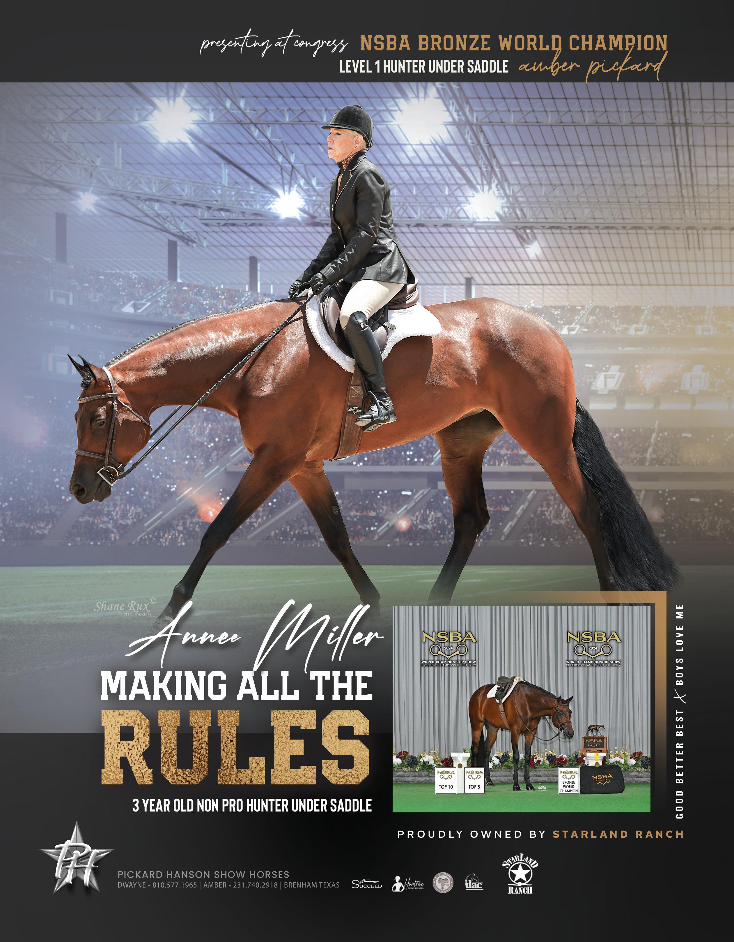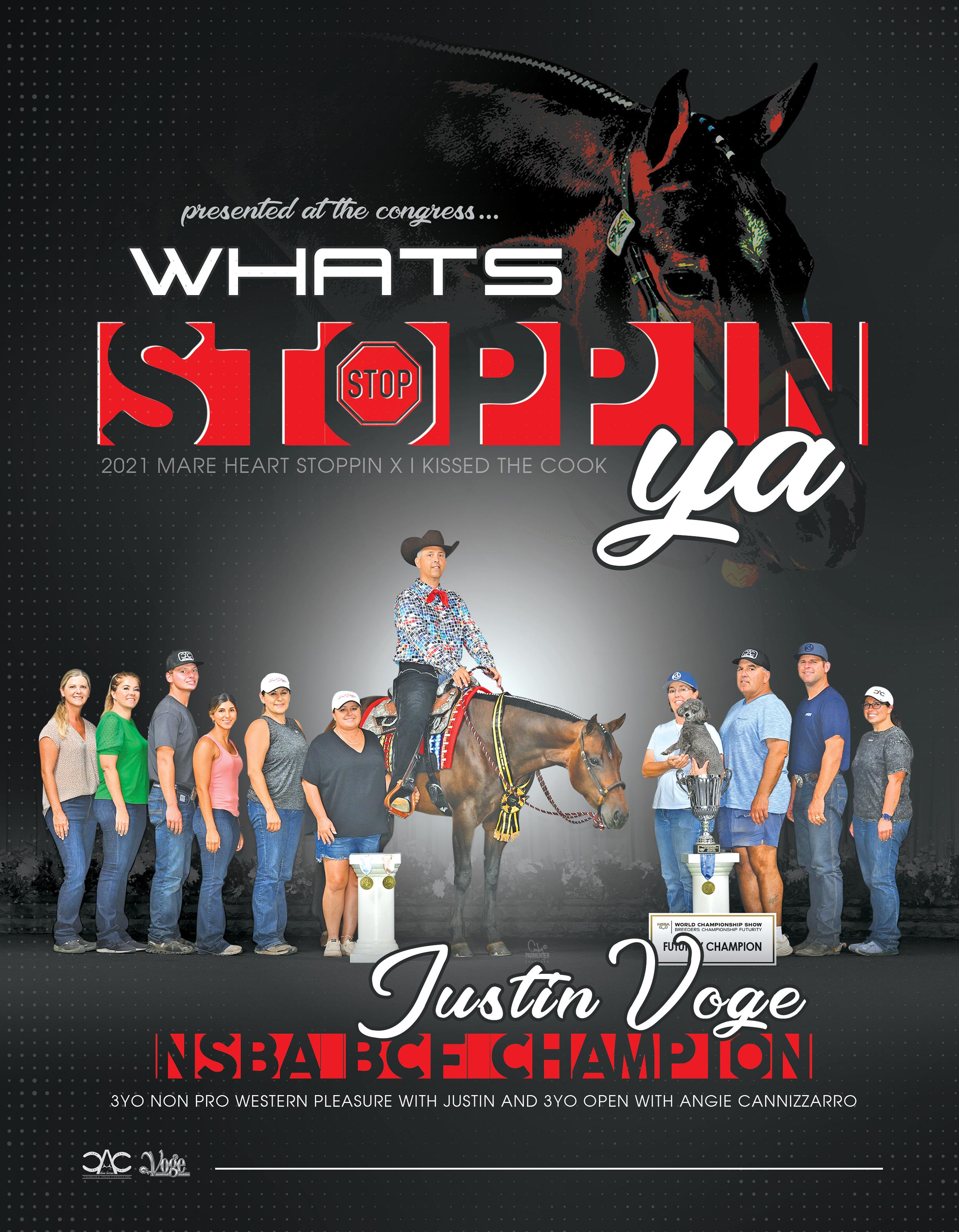 “My goal for him is to win at the Congress,” Terlizzi said. “He’s already earned NSBA World Championship titles so it would be icing on the cake for him to finish out his career as a Congress Champion. After this year he will be starting his new career as a breeding stallion and I hope to see him be one of the best stallions our industry has seen.”