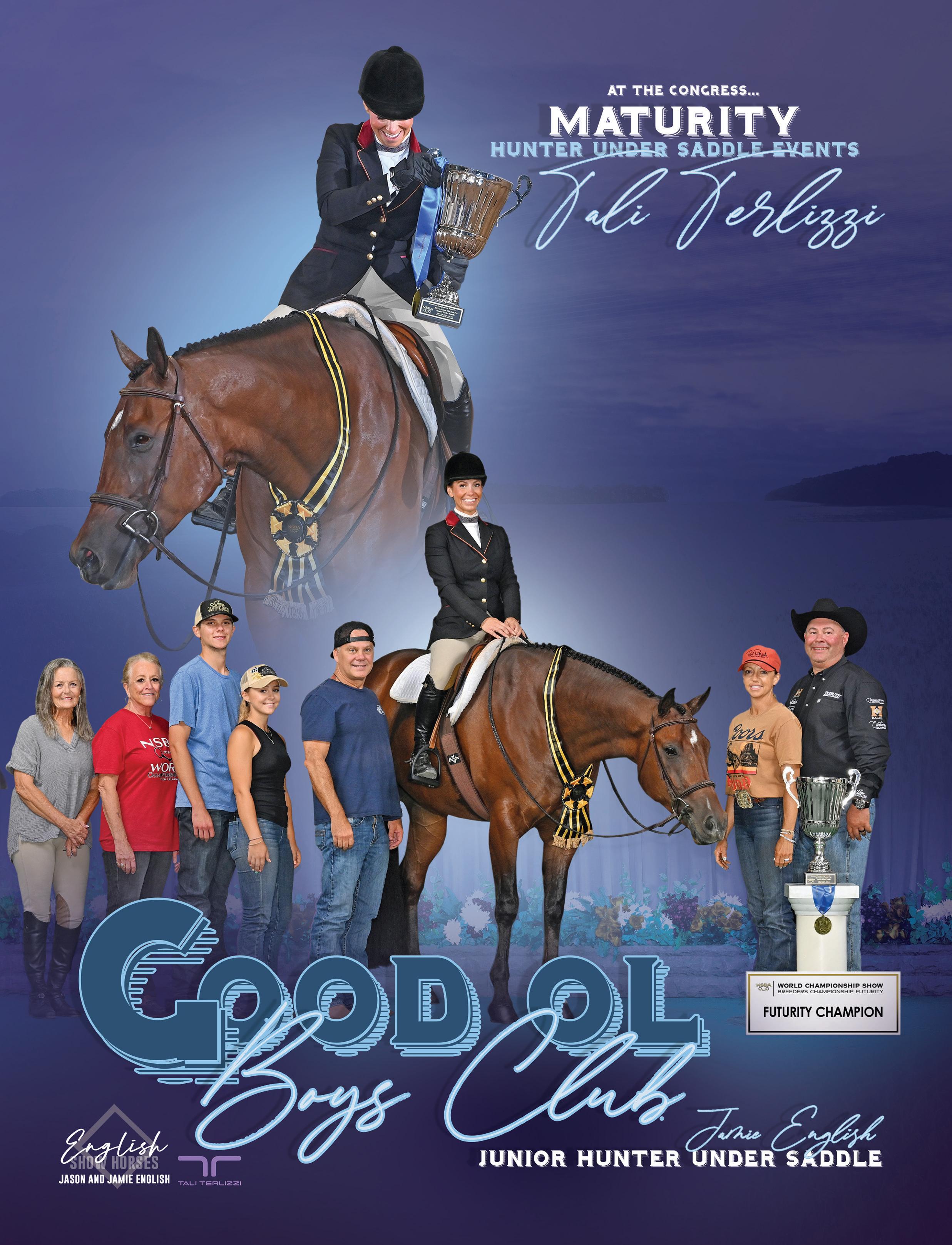 • Good Ol Boys Club, a 2019 bay gelding by Good Better Best and out of Shez Immortal is showing in Junior Hunter Under Saddle classes with Jamie English and in Non-Pro Maturity classes with Terlizzi.