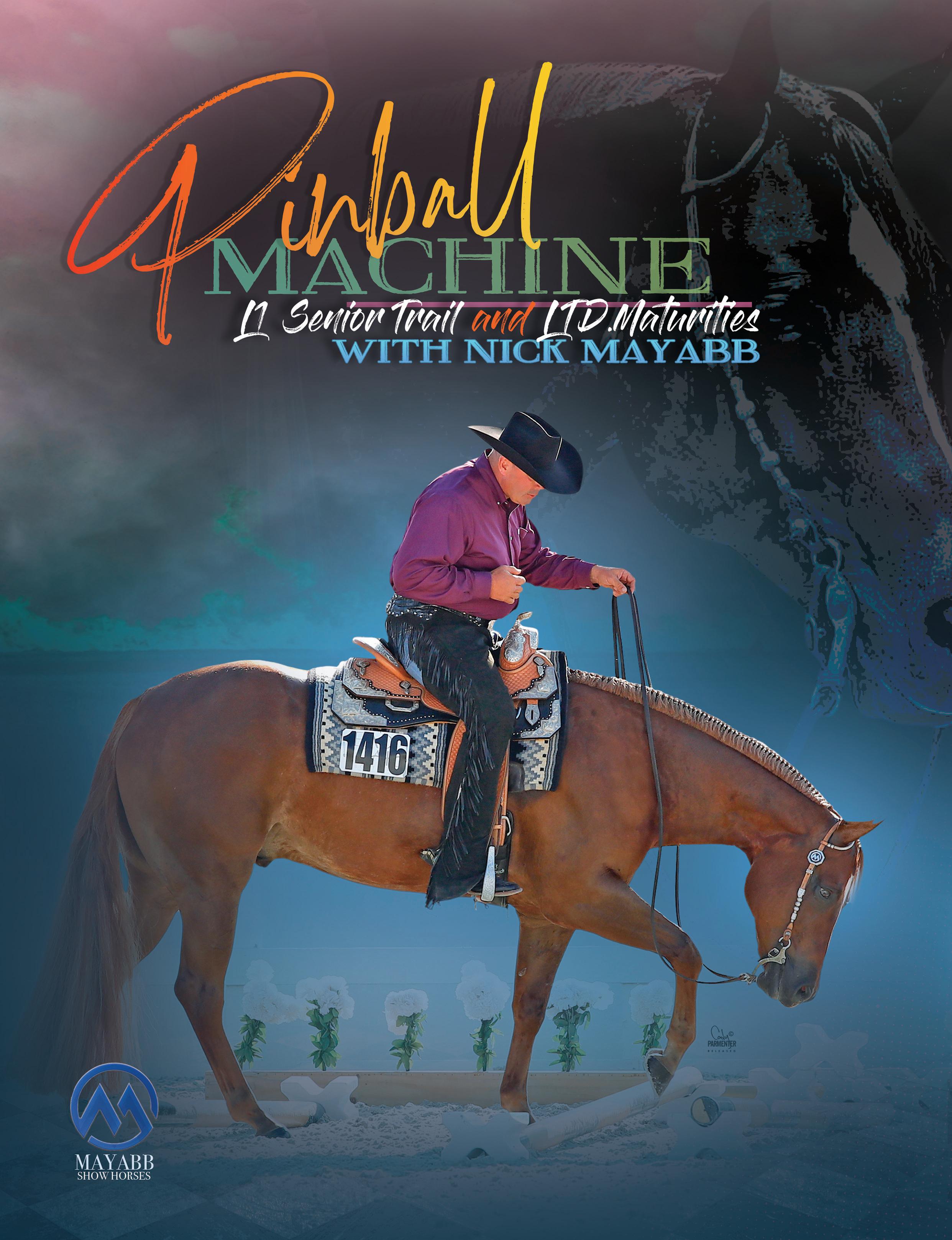 • Pinball Machine, a 2018 sorrel gelding by Machine Made out of Too Lazy To Pass, is showing in Green Senior Trail and First Year Trail with Florida trainer Nick Mayabb.