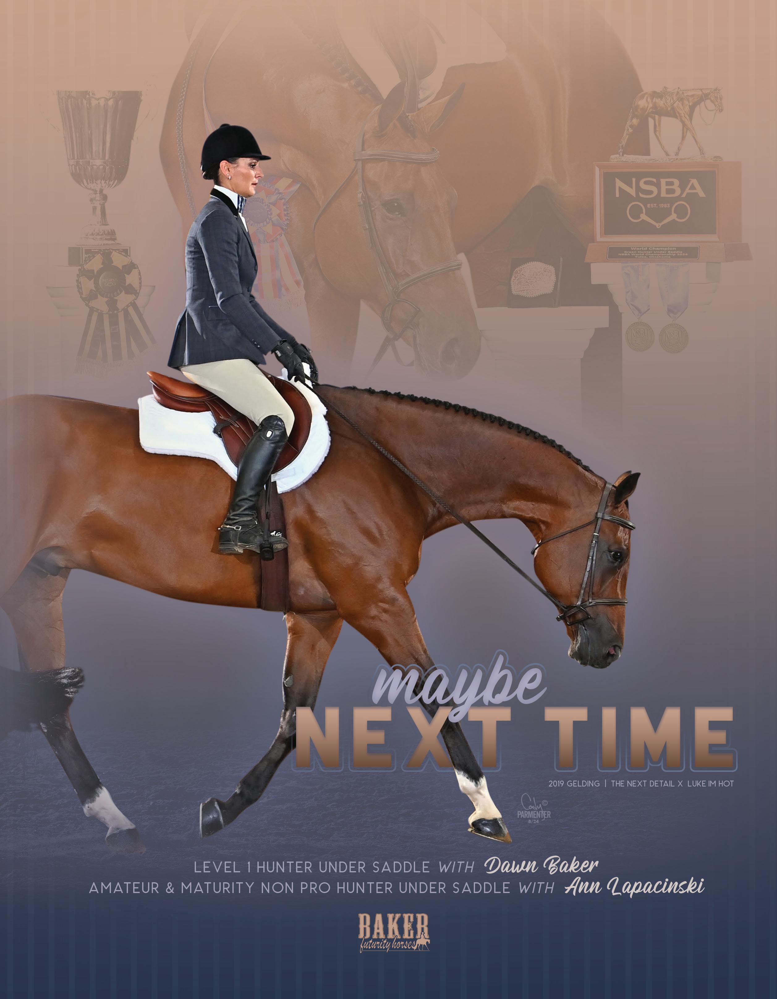 Just last month he collected another bronze trophy in the Green Hunter Under Saddle at the NSBA World Show and he also placed third in the Breeders Championship Futurity 4 to 6-Year-Old Open Hunter Under Saddle.