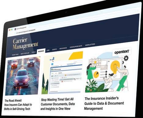 Carrier Management’s Research and Trends platform gives you free access to dozens of high-quality white papers, reports, and webinars on trending topics like automation, AI, claims, compliance, cyber risk, fraud, payments, social inflation, technology, and more.
