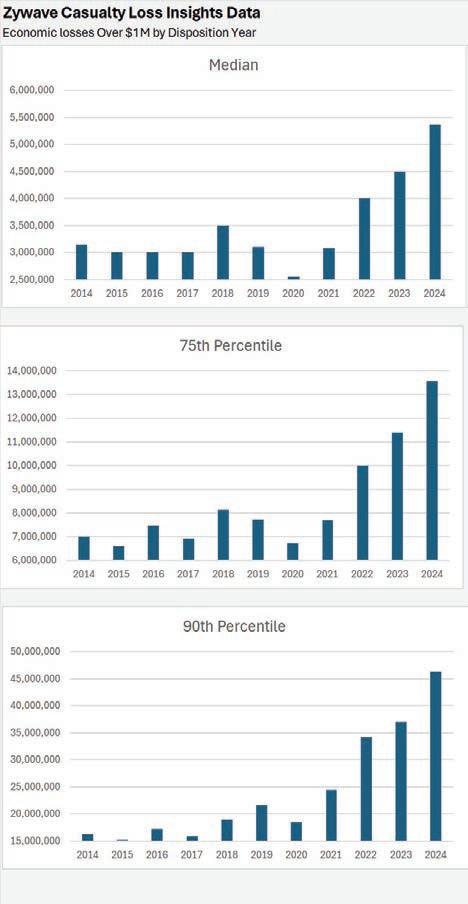 “Liability claims costs in the United States have entered a self-reinforcing spiral. Traditional economic drivers such as wage inflation, medical-cost trends, and CPI growth no longer explain the pace at which liability claims are escalating,” said an article published by Swiss Re, titled “Verdicts on trial: The behavioral science behind America’s skyrocketing legal payouts.” continued on page 14