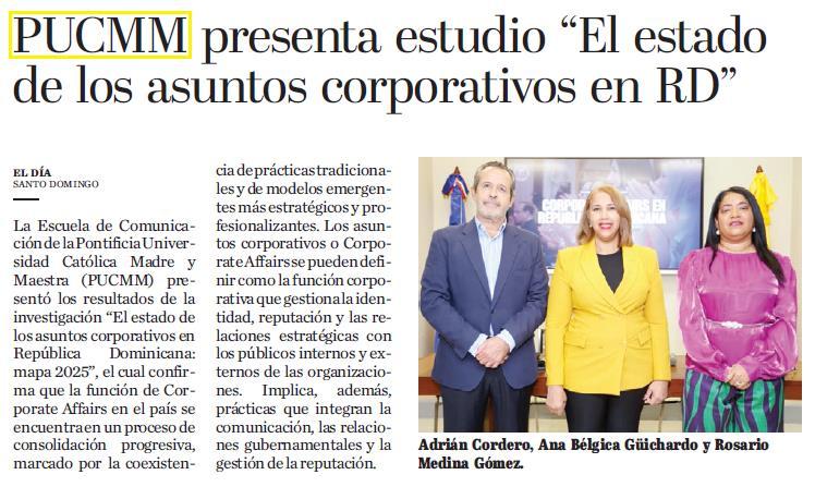 • https://eldia.com.do/pucmm-presenta-estudio-el-estado-de-los-asuntos-corporativos-en-rd/