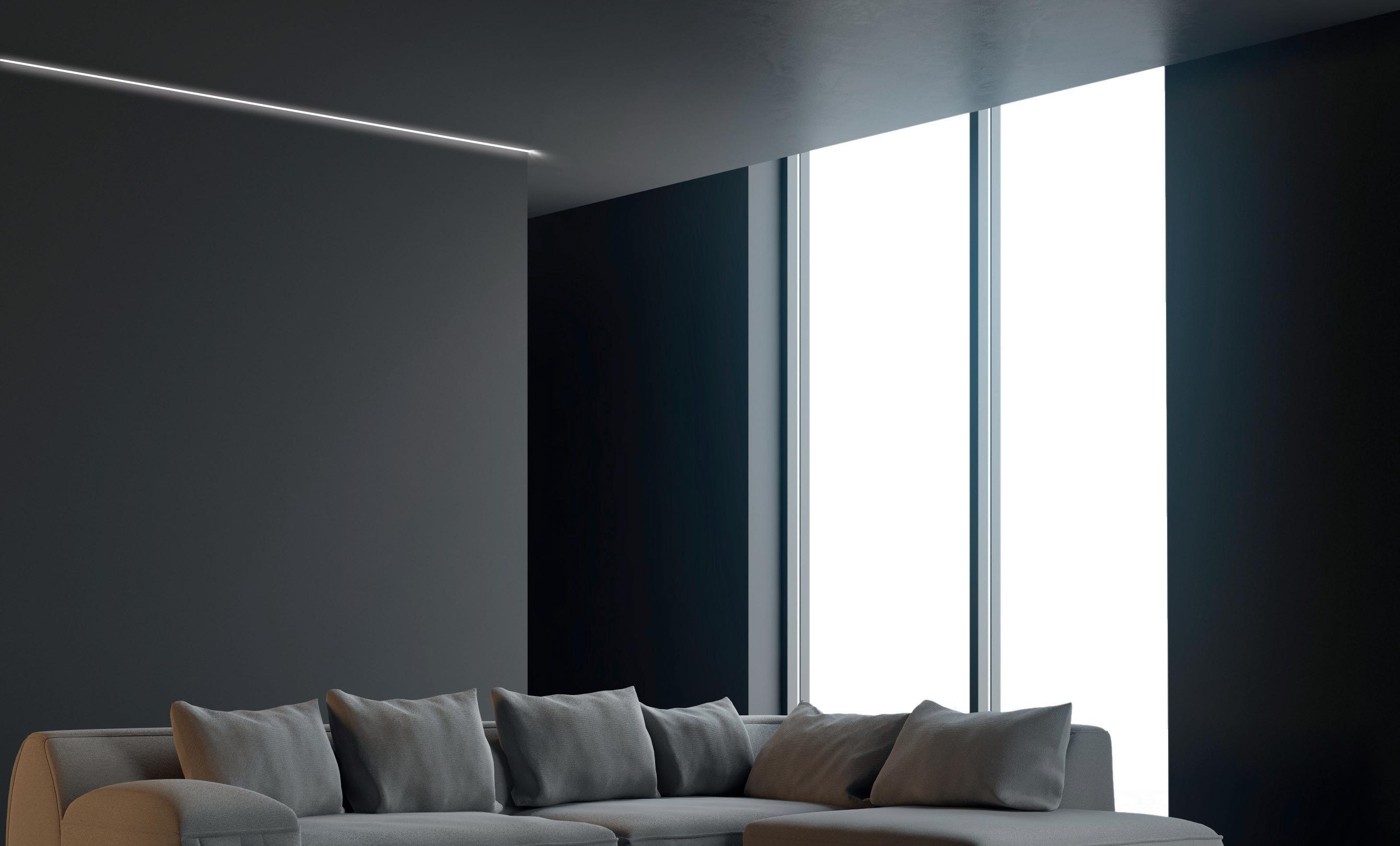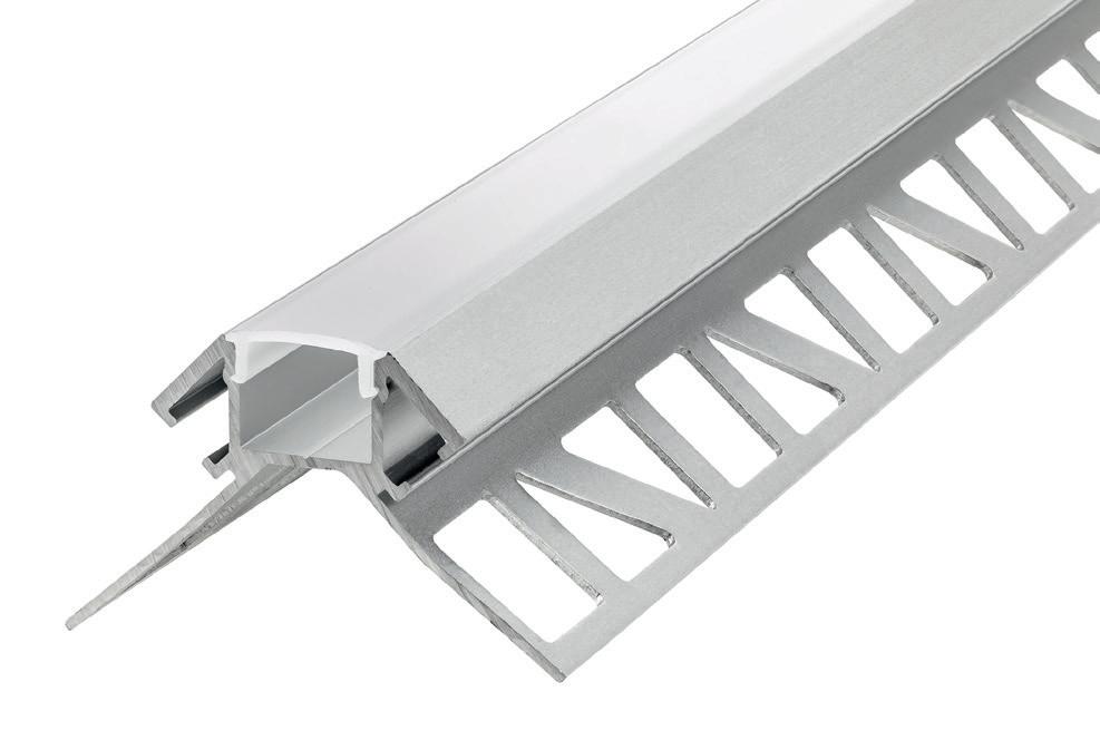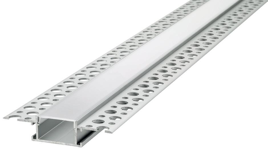 This recess mounted aluminium profile is designed to be plastered into interior walls and ceilings to create linear lighting effects. The L-shape trim makes it easy to fit into plasterboard or concrete materials and apply plastering material over the top for a seamless finish.