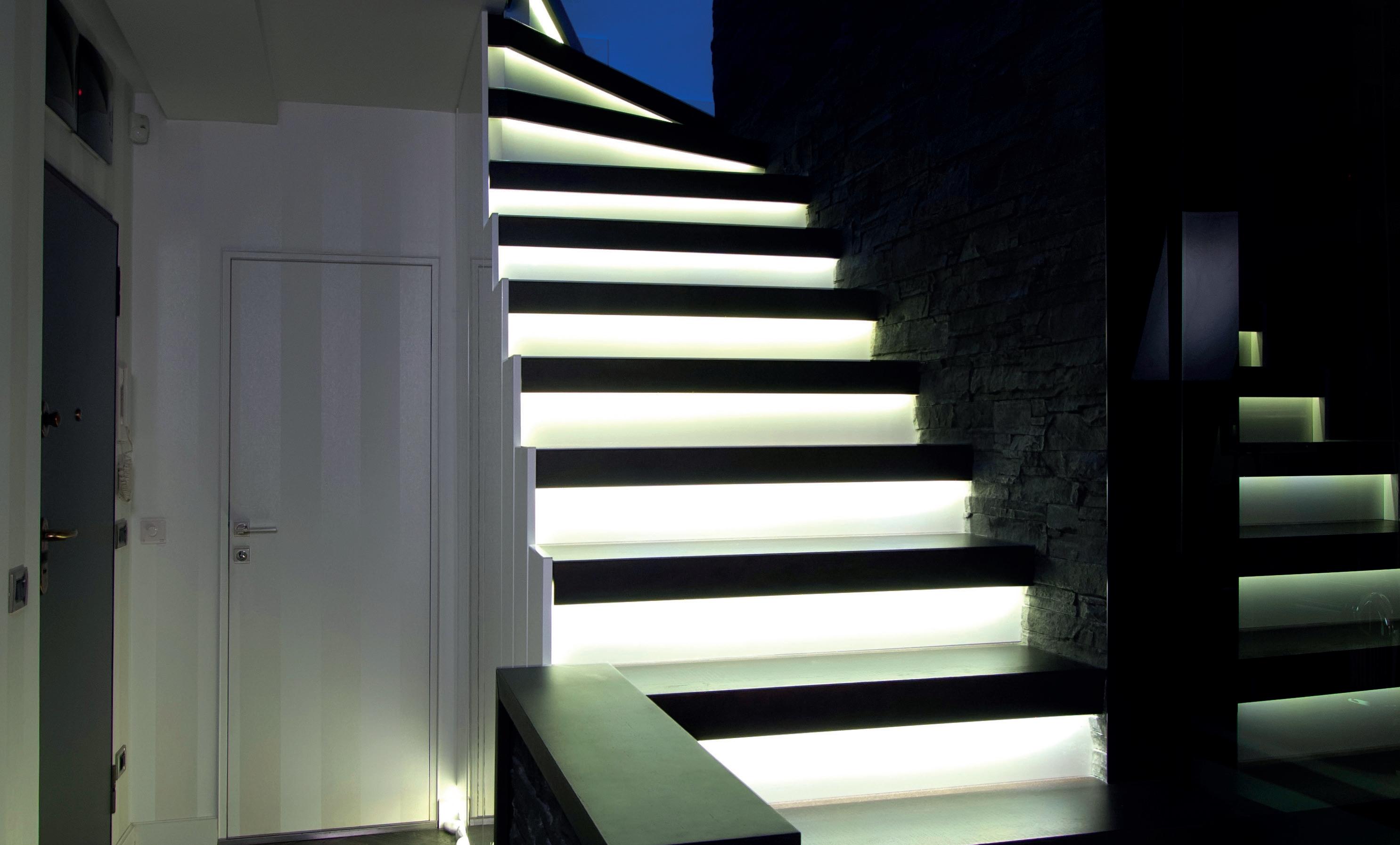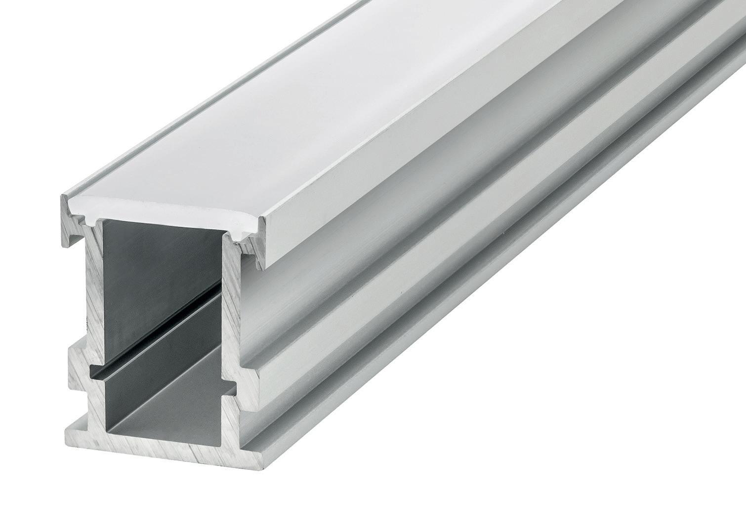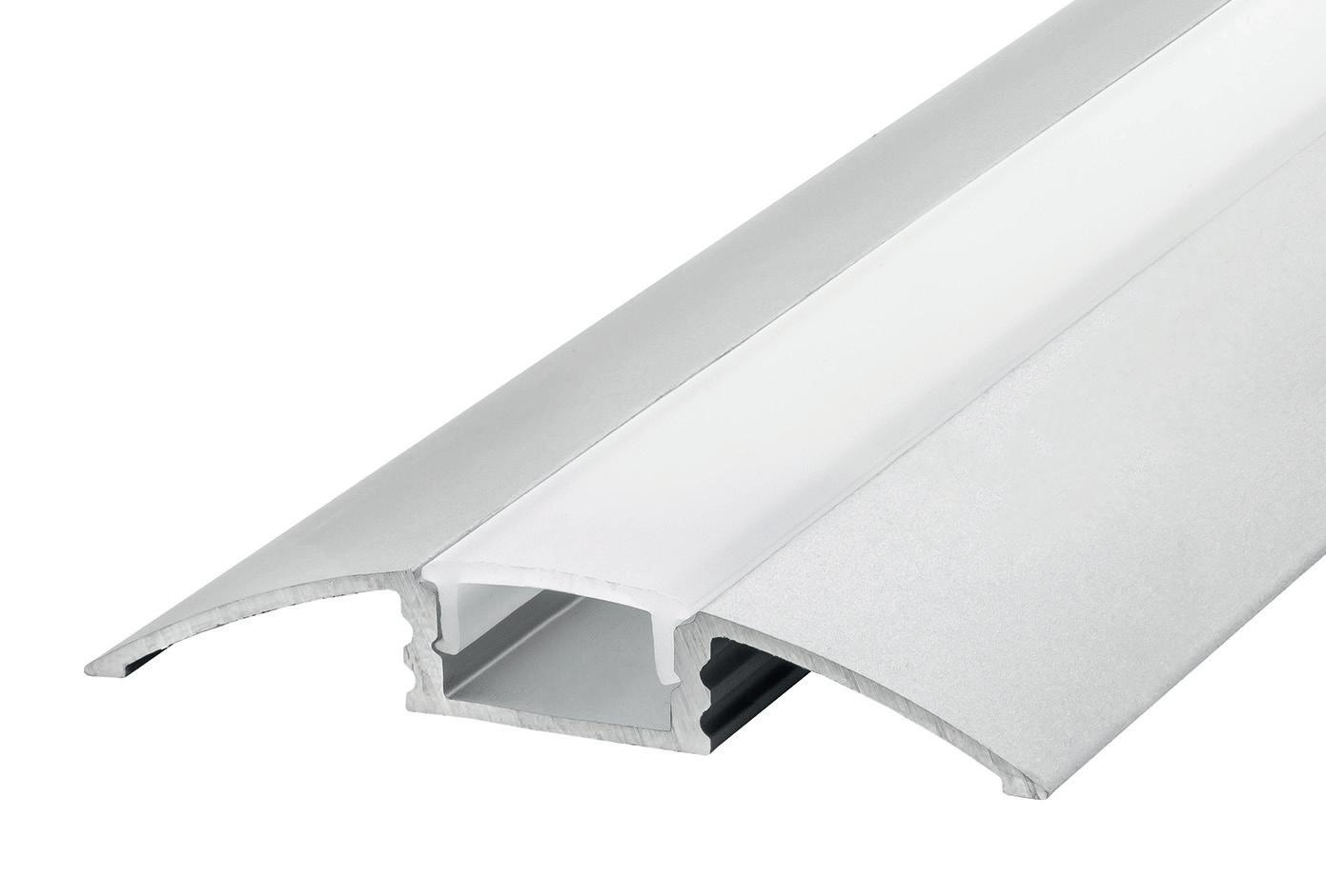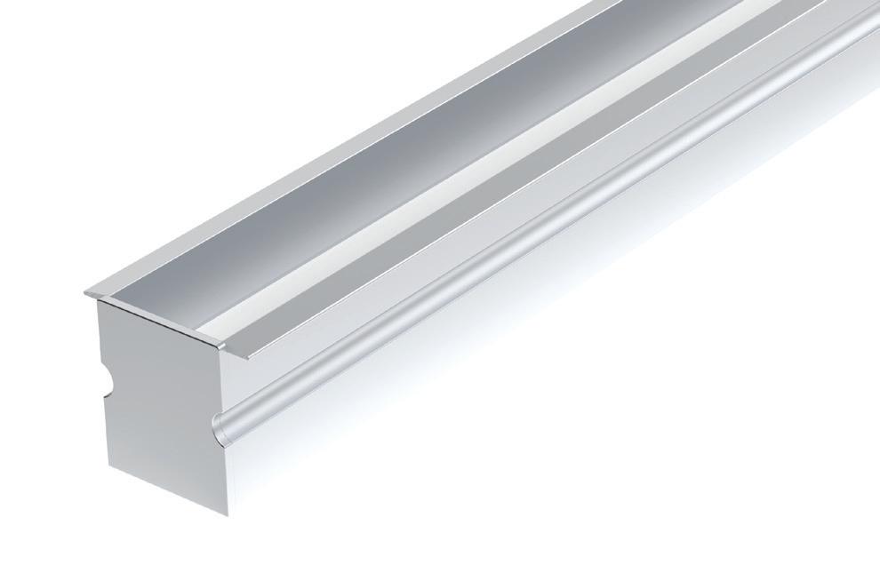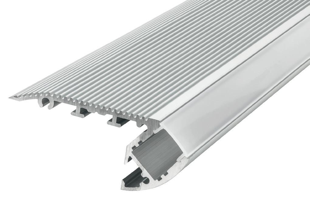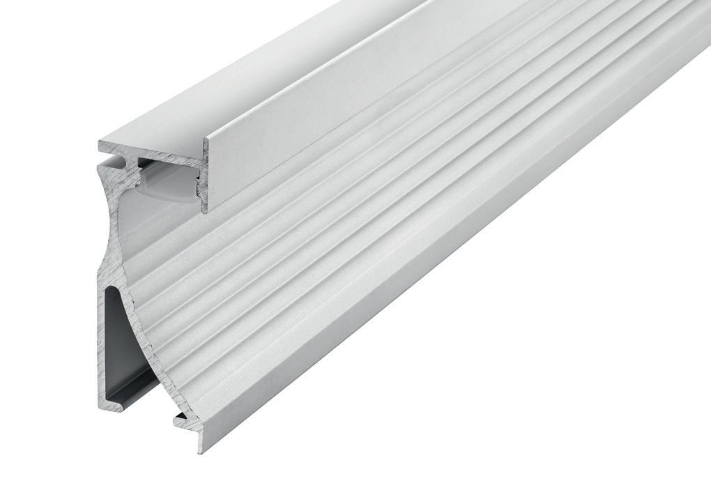This surface-mounted aluminium profile is designed to illuminate staircases and features two diffuser channels: