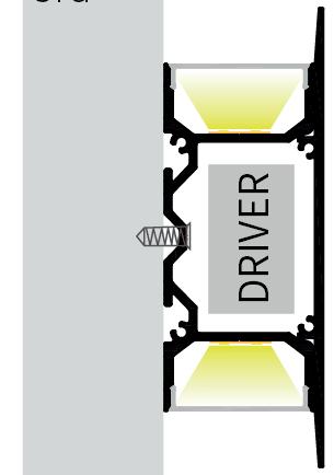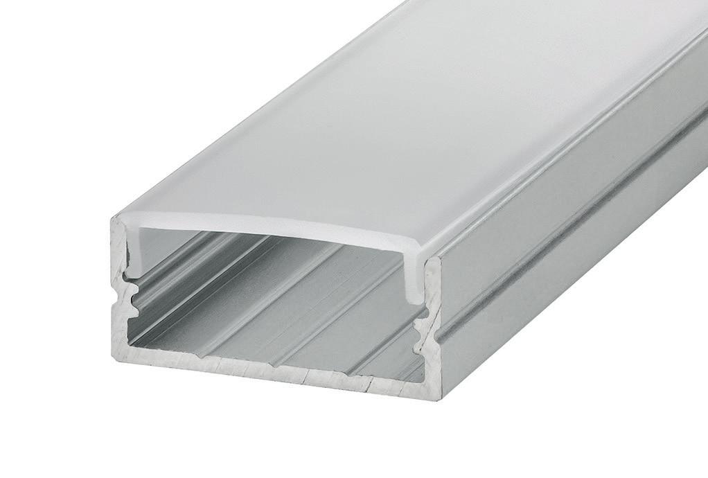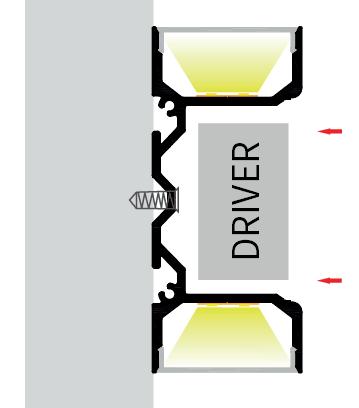 This surface-mounted, aluminium profile is designed to utilise two lengths of strip to provide two-way illumination, either up and down or left and right, depending on installation. The special design allows for a suitable-size driver to be accommodated within the extrusion and within close proximity to the LED strips.