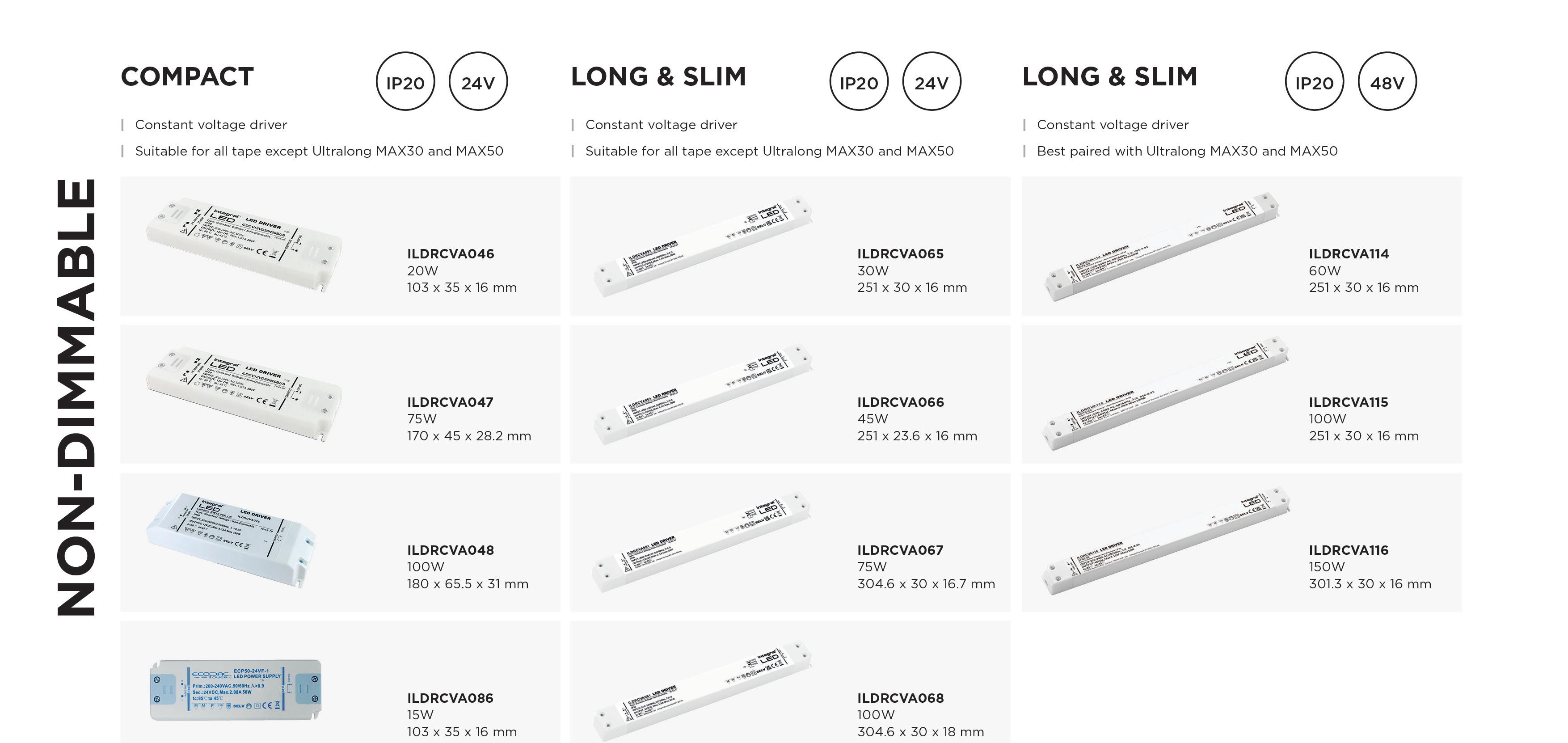 Available in MAX20, MAX30 and MAX50 options, Ultralong is ideal for locations where multiple drivers can’t be used. With Outdoor IP67 Low Extrusion protection available, Ultralong can be installed even in the most challenging environments. Best used where you need extended runs using a single driver.