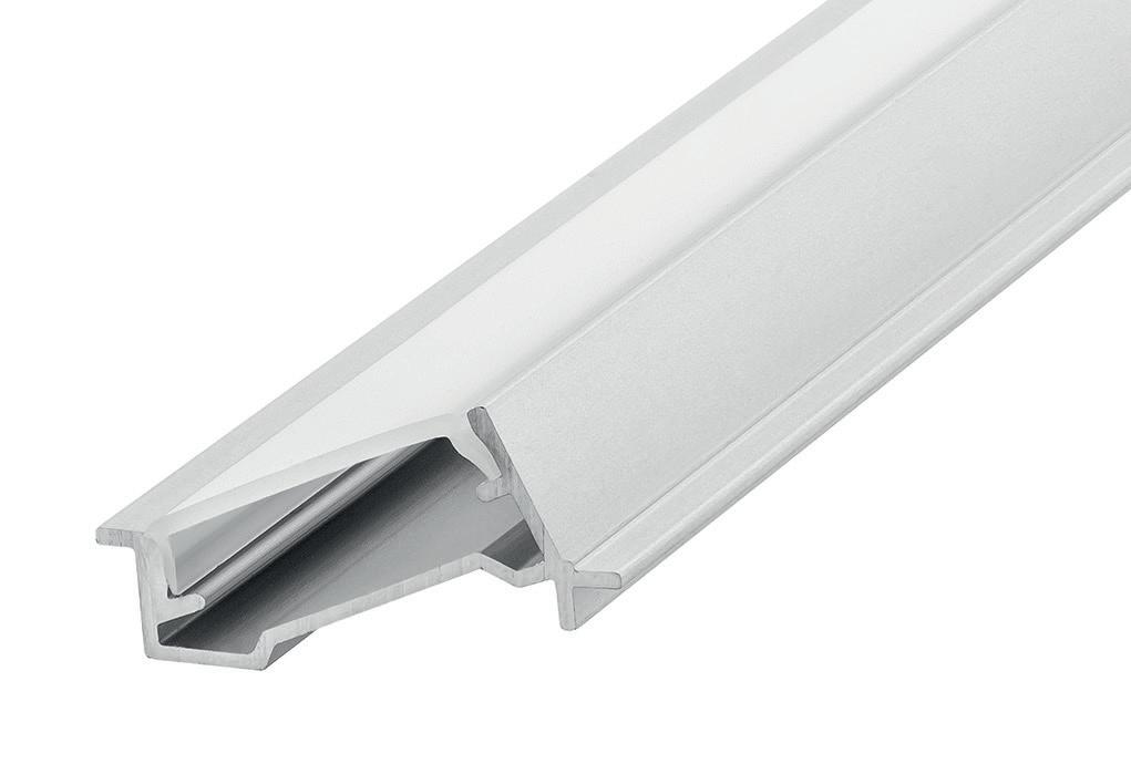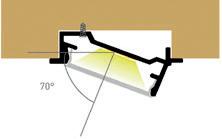 This recess mounted aluminium profile is designed to direct the light output at a 70° angle, providing targeted illumination. Ideal for wooden furniture applications such as bookcases and wardrobes, it is also perfect for retail clothing displays, enhancing product visibility with stylish, angled lighting.