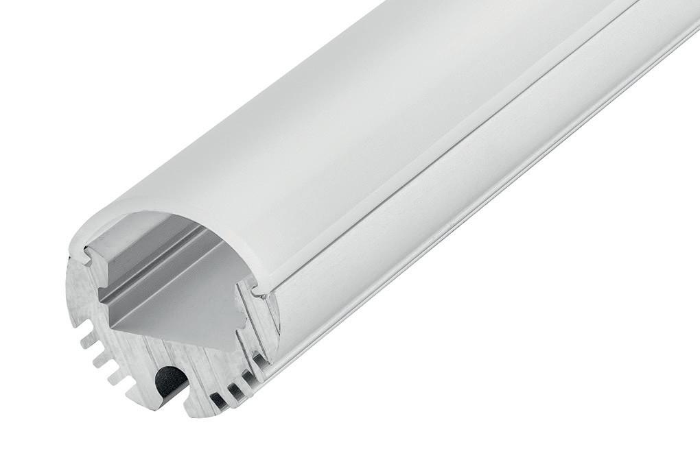 This round aluminium and polycarbonate profile creates striking tubes of light for a bold effect. Designed for indoor use, it features a frosted diffuser that provides a wide, even beam of light, perfect for enhancing any space.