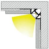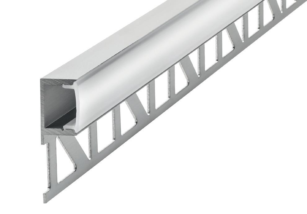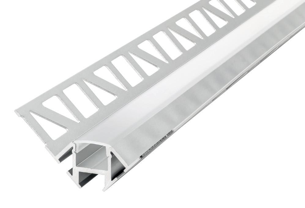 This recess mounted profile is designed to be tiled into inner corners of interior walls and ceilings. The L-shape trim makes it easy to fit into plaster or concrete materials and cover the trim with ceramic tiles for a seamless finish.