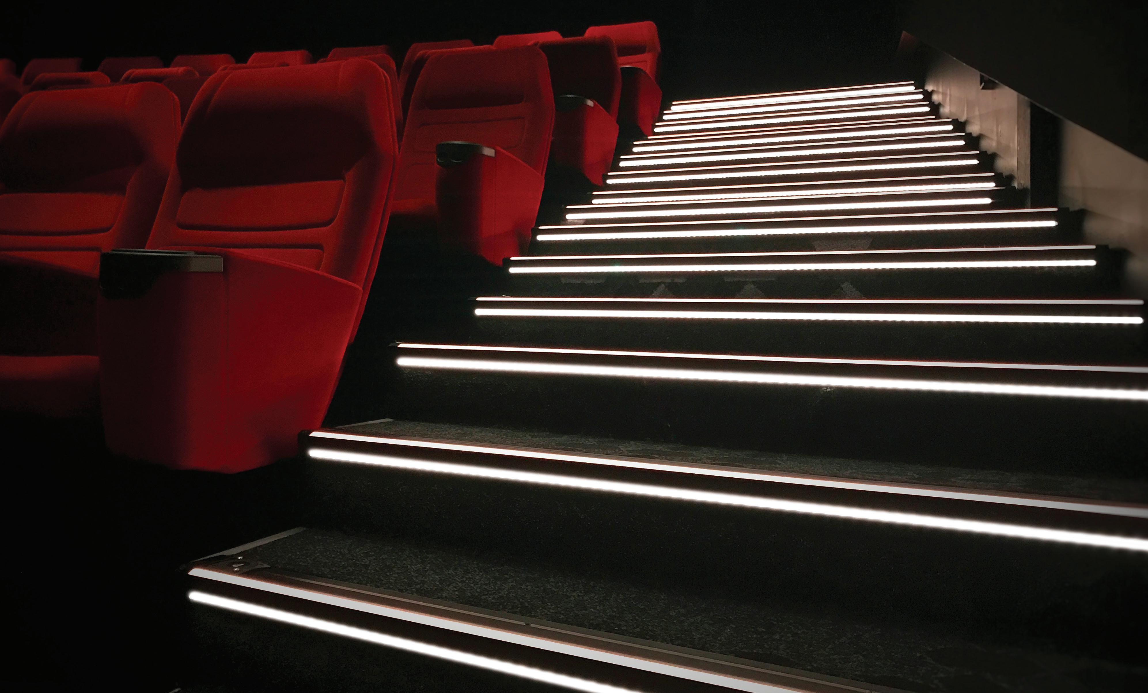 1. Upward diffuser – Defines each step, providing safety and visibility, especially in low-light environments like cinemas.