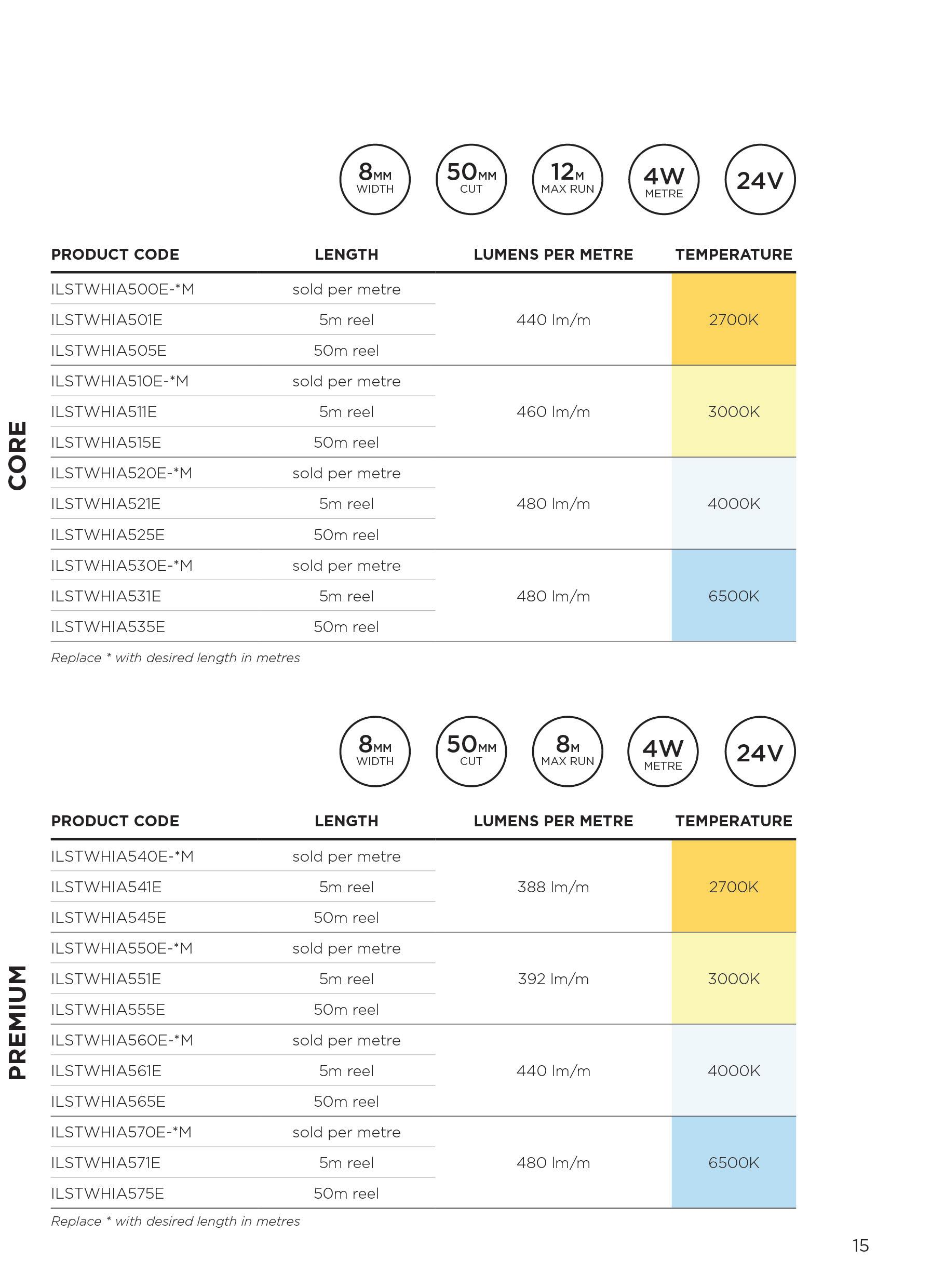 Select your preferred wattage and form factor to complete your LED strip on page 81