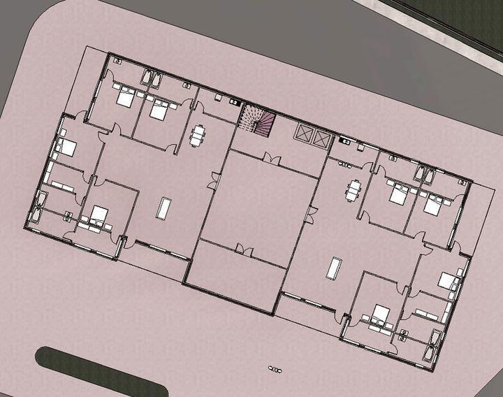 Abalancedfloorplatewithtwo2-BHKsandtwo3-BHKsina compactlayout.