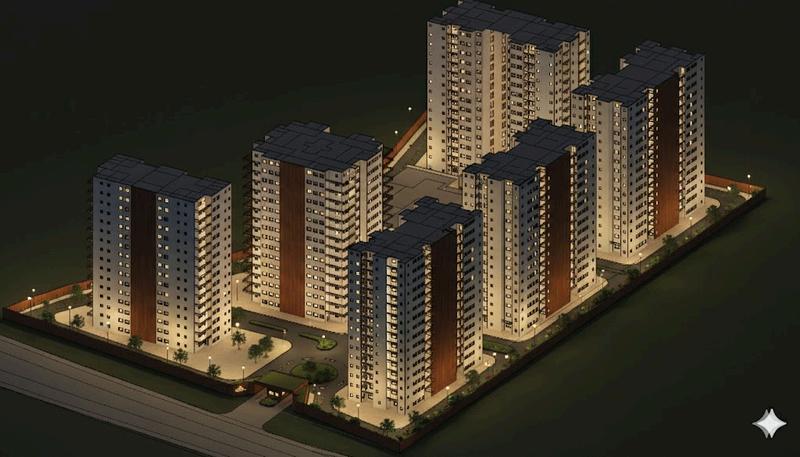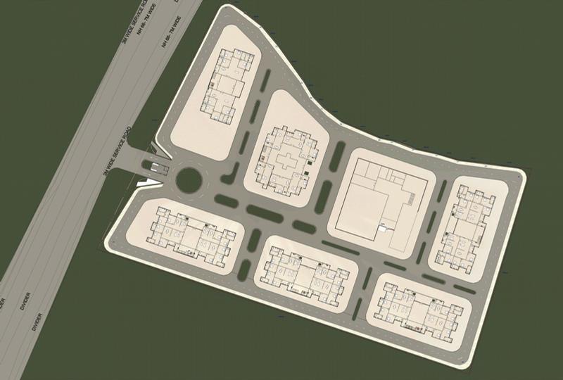 Pedestrian: The central landscaped plaza acts as the main pedestrian core, with safe walkways linking towers and peripheral tracks for jogging.