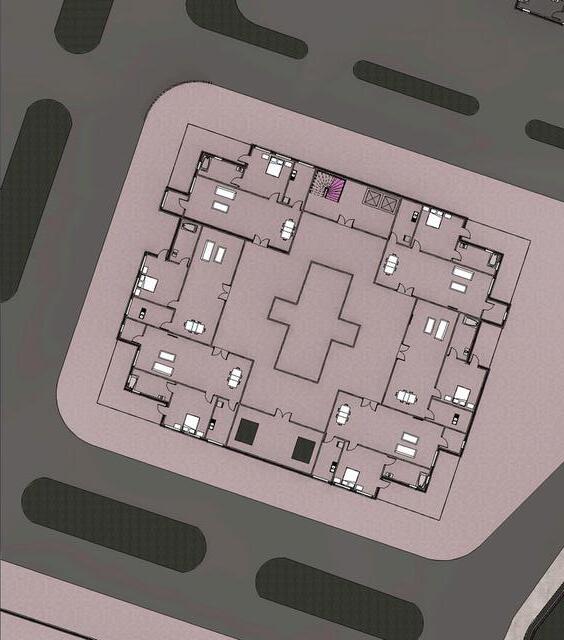 Vehicular: A loop road around the towers provides smooth entry, exit, and drop-off, with curved turns ensuring easy movement and fire access.