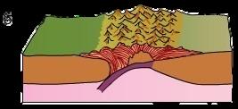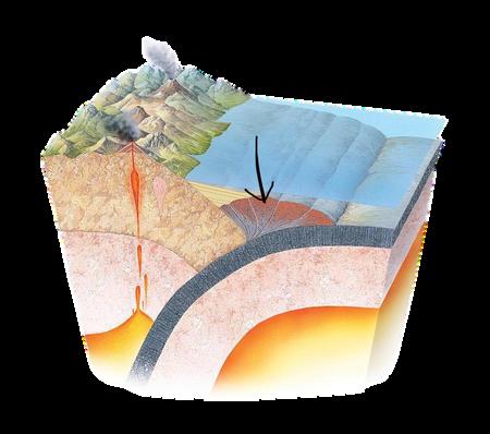 En este proceso, tanto por la enorme fricción como por la pérdida de agua de la corteza que subduce, las rocas se funden y se genera magma, el cual asciende debido a la diferencia de temperatura y densidad dando lugar a erupciones volcánicas, y con ellas a nuevos volcanes.