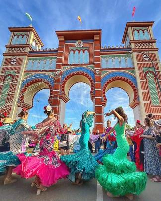 Los volantes, presentes en el escote y en el bajo, son el sello inconfundible del traje de flamenca, simbolizando la alegría y la exuberancia del Sur de España El color es fundamental: expresión