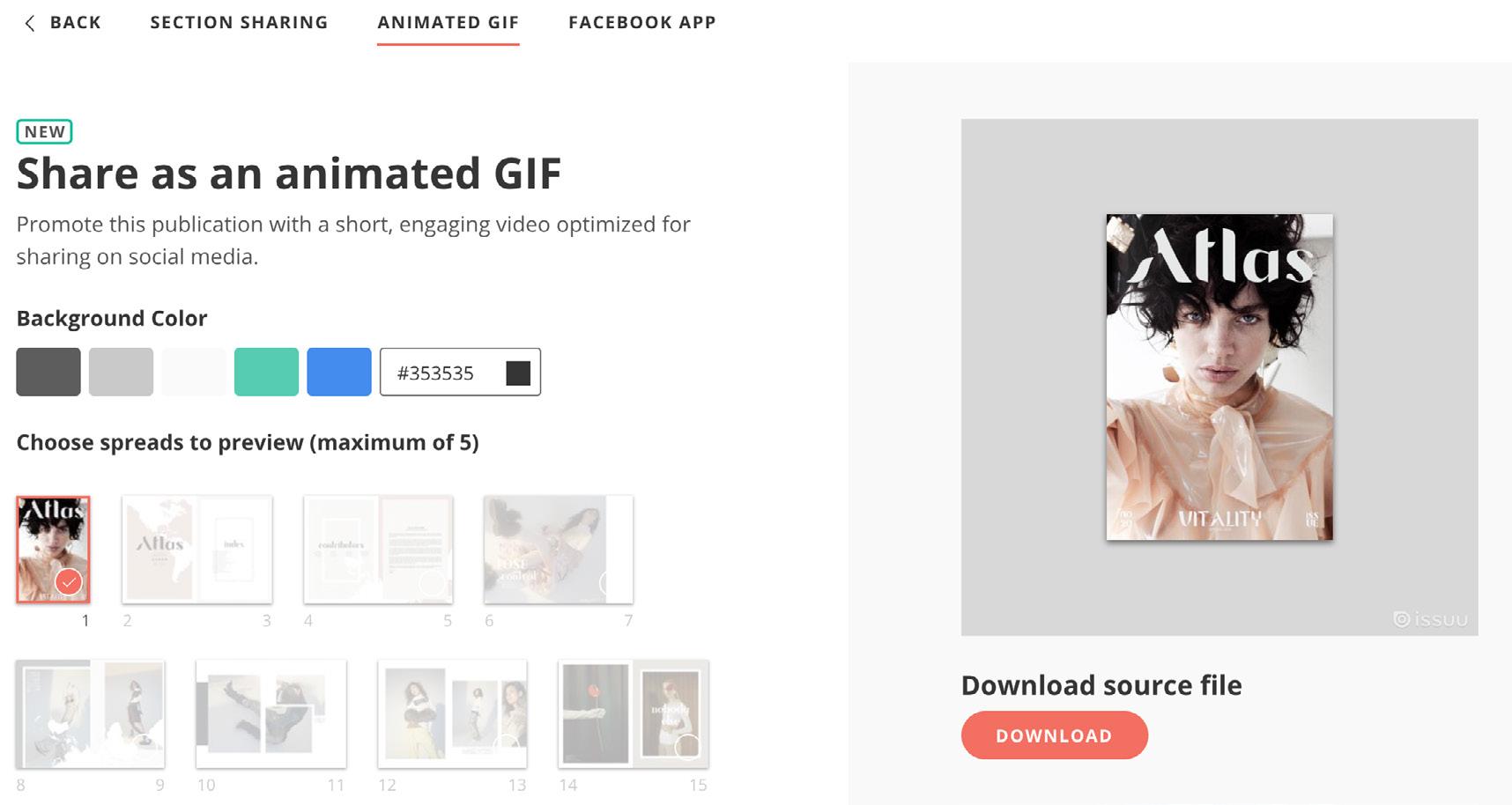 A GIF, or moving image file, can help your content stand out in new eye-catching ways. With Issuu’s Share as GIF tool, it’s easy to create, customize and share your publication as an animated GIF — perfect for social media or email!