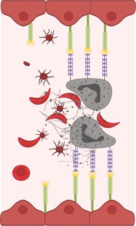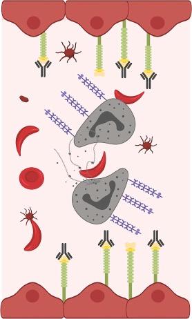 immunoglobulin G2; NET, neutrophil extracellular trap; PSGL1, P-selectin glycoprotein ligand-1; SCPC, sickle cell pain crisis. 1. Ala C, et al. Arch Pharm (Weinheim). 2024;357(11):e2400381; 2.Tang MS, et al. Vox Sang. 2024;119(6):521-528; 3. Ataga KI, et al. N Engl J Med. 2017;376:429-439. Image adapted from Leibovitch JN, et al. Blood Rev. 2022;53(100925):1-8.
