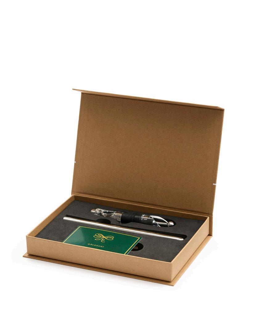 Gåvokortet som ger dubbel glädje! Vårt gåvokort levereras i en elegant och stilren presentkartong tillsammans med en utvald förgåva – välj mellan en elegant och funktionell kockkniv eller en smart kylstav/luftare som håller drycken perfekt tempererad. Mottagaren får inte bara en uppskattad gåva direkt, utan kan även lösa in sitt gåvokort online och välja fritt bland ett brett urval av noggrant utvalda produkter i en rad olika kategorier. En omtänksam och flexibel gåva som passar alla smaker.