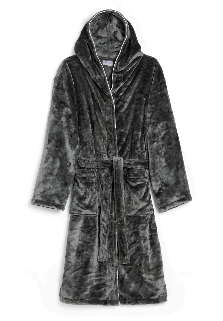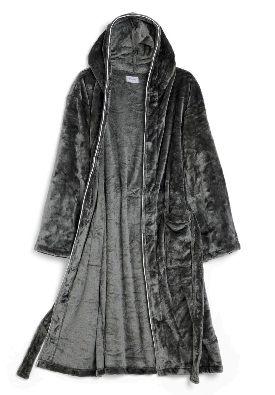 Morgonrock i flanellfleece med omslutande luva. Med sin lyxigt mjuka kvalitet är den som gjord för lugna stunder. Den lena fleecekvaliteten sveper in dig i komfort, medan luvan ger extra värme när du behöver det som mest. Perfekt för morgnar, kvällar eller lugna helger hemma.
