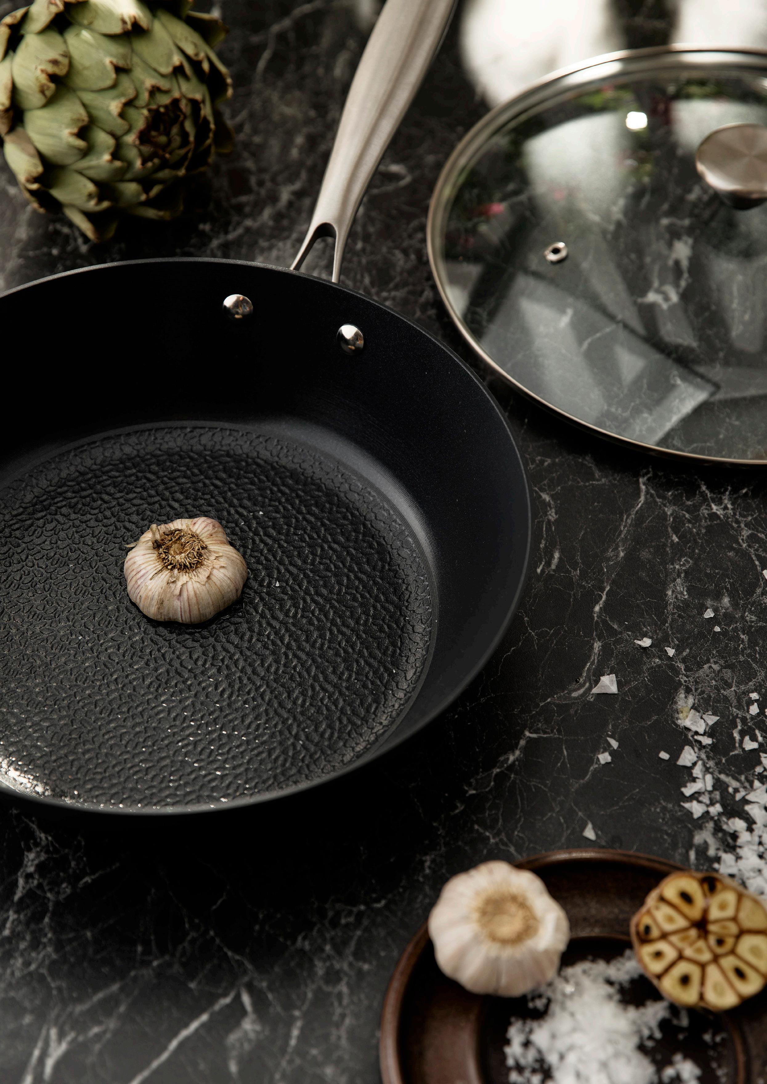 Den mikrostrukturerade stekytan ger naturliga non-stick-egenskaper som förbättras med användning, medan den robusta konstruktionen är anpassad för alla värmekällor – inklusive induktion och ugn.