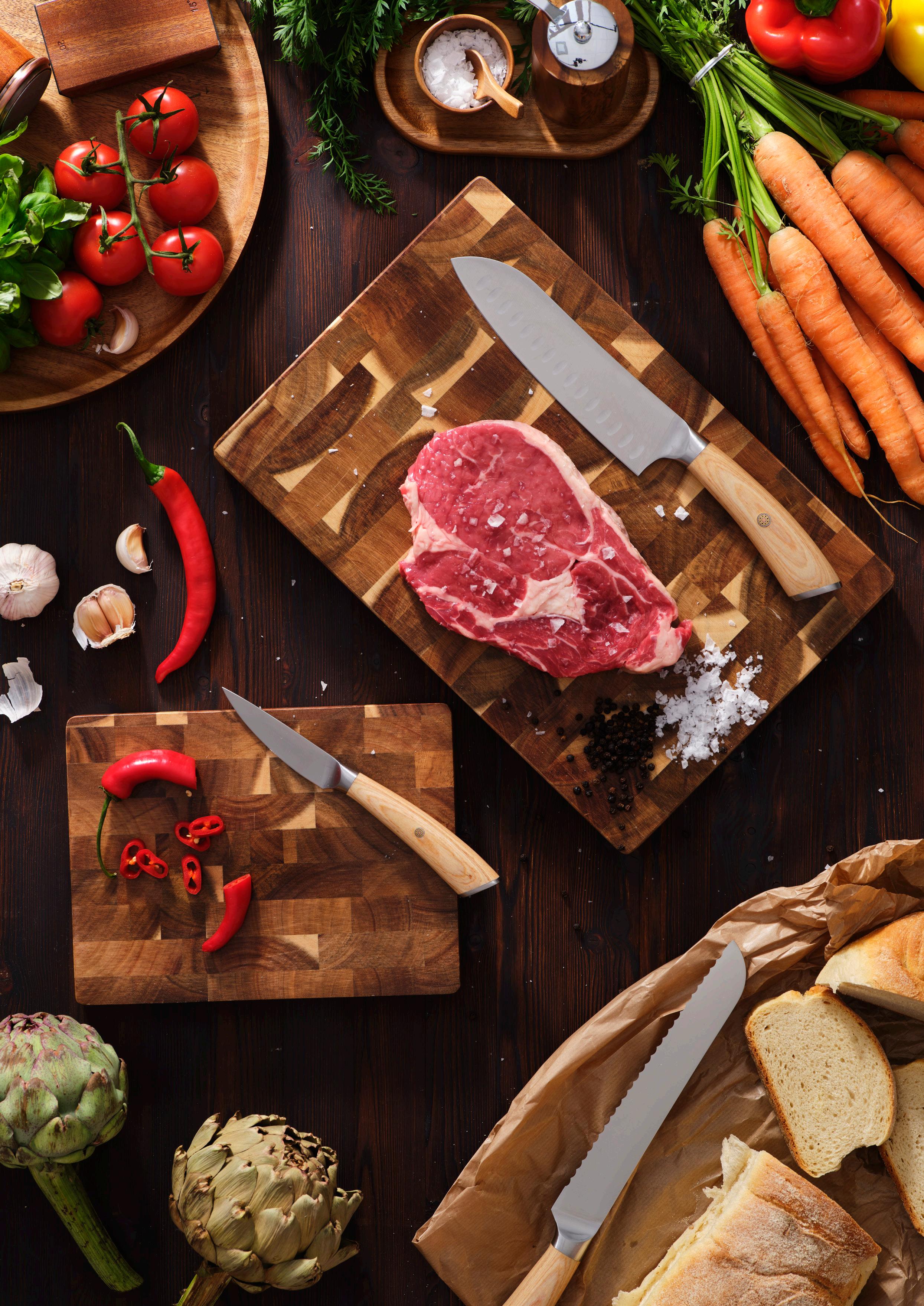 Det viktigaste, snyggt samlat. Detta knivset innehåller en rejäl kockkniv och en smidig skalkniv – två oumbärliga verktyg i varje kök.