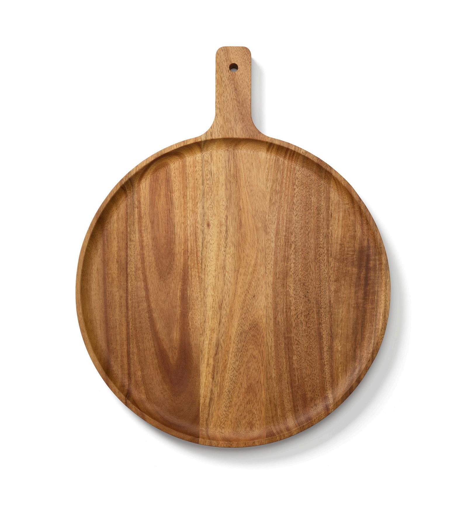 Tillverkad i stavlimmad FSC-certifierad acaciaträ, bjuder denna vackra bricka på en unik ådring och varm, rustik känsla. Den runda formen och rejäla ytan gör den idealisk för allt från nygräddad pizza till ostbrickor, tapas, bröd eller söta bakverk. Lika vacker som praktisk – en tidlös serveringsdetalj som lyfter varje måltid, oavsett tillfälle.