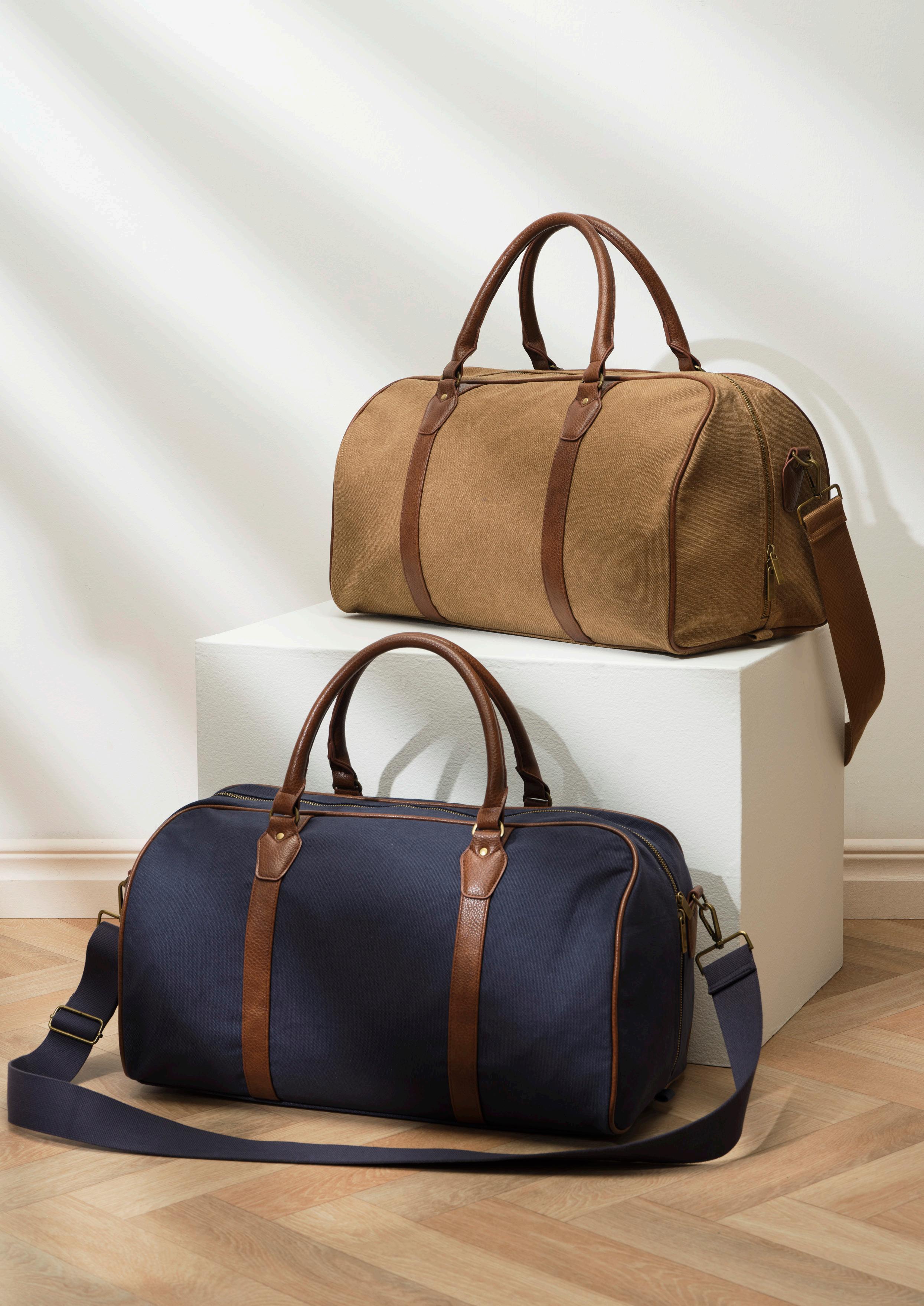 En klassisk och pålitlig weekendbag i slitstark bomullscanvas. Perfekt följeslagare för en kortare resa. Med sin balanserade storlek rymmer den det du behöver utan att kännas otymplig. Bagen har både bekväma handtag och en justerbar axelrem, vilket gör den smidig att bära oavsett resesätt. Insidan är försedd med en praktisk ficka med dragkedja för att hålla ordning på småsaker. Materialvalet i 100 % bomullscanvas ger väskan en naturlig, avslappnad känsla. Detaljer i återvunnen PU.