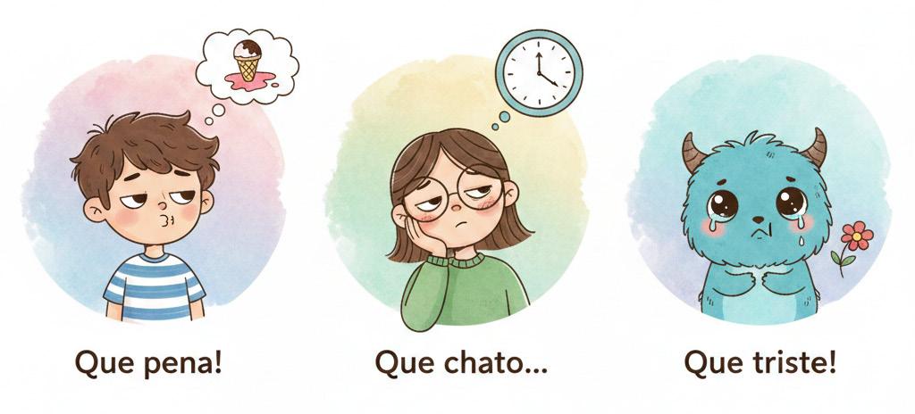 “Que pena…” ou “Que chato!” ou “Que triste…”